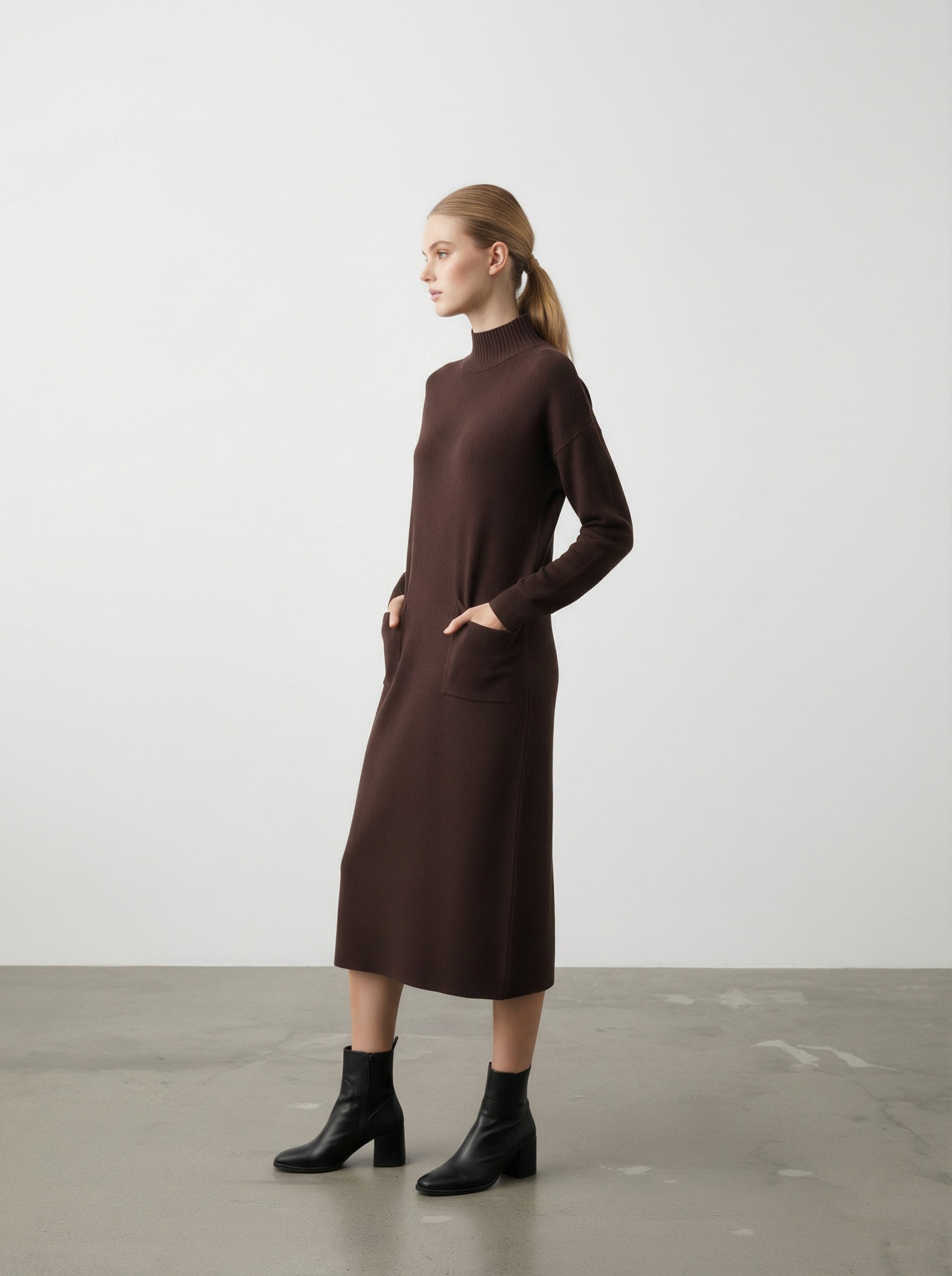 Abito midi con collo alto