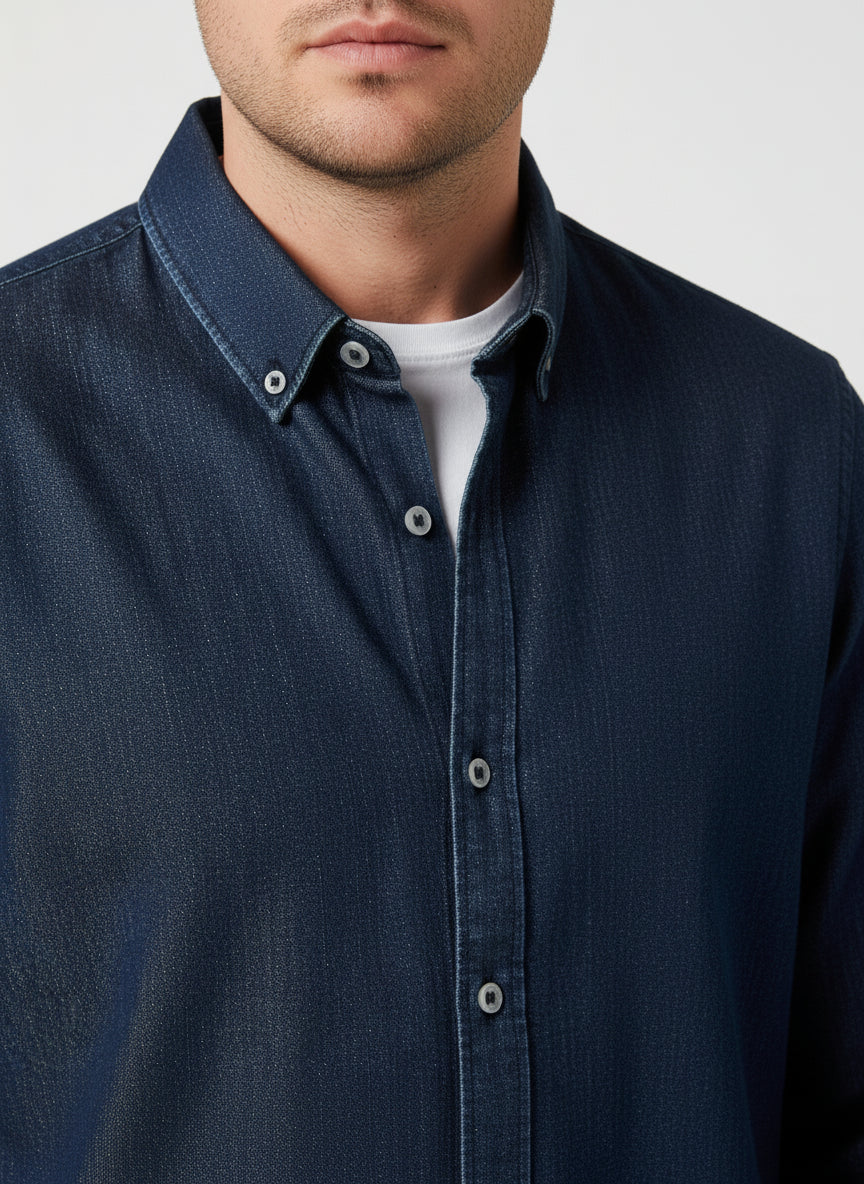 La camicia denim con colletto alla coreana è un must-have per il tuo guardaroba. Realizzata in morbido cotone, questa camicia è ideale per un look casual e raffinato.