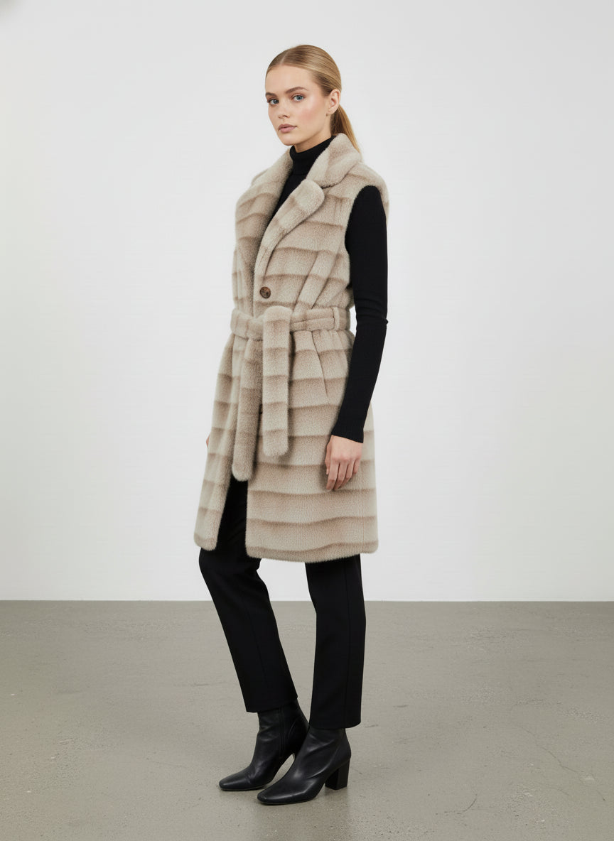 Gilet pelliccia con cintura