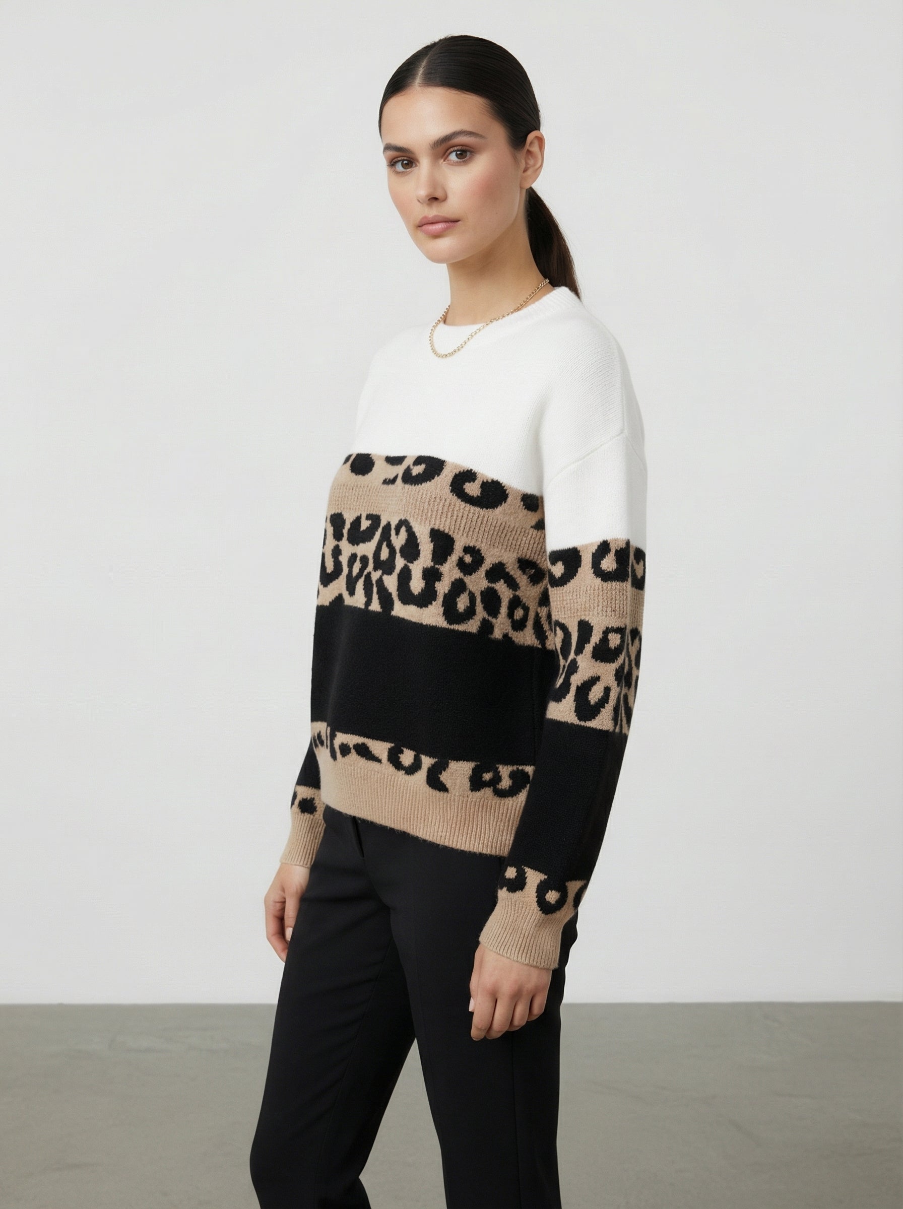 Maglia a righe leopardate