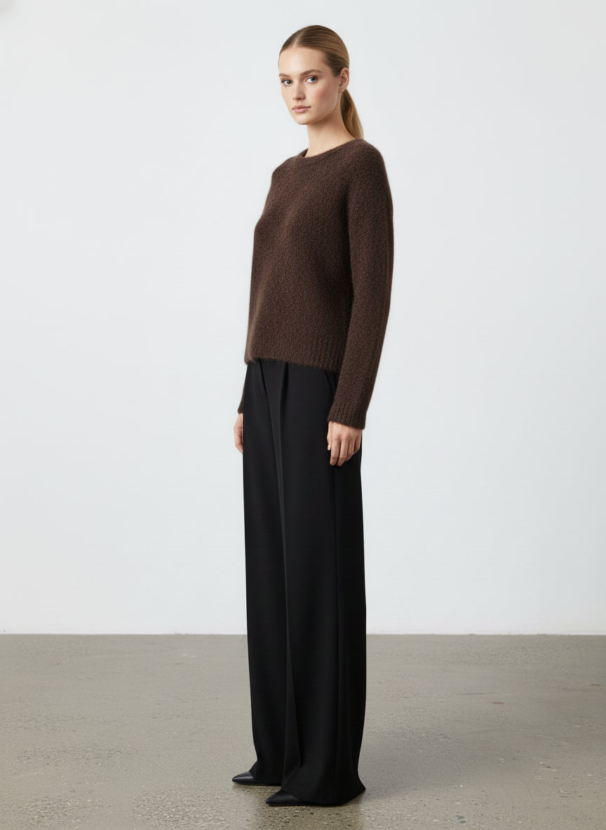 Questa maglia oversize in lana è l'ideale per affrontare le giornate più fredde con stile. Il suo design morbido e avvolgente offre un comfort senza pari, mentre il colore caldo la rende facilmente abbinabile.
