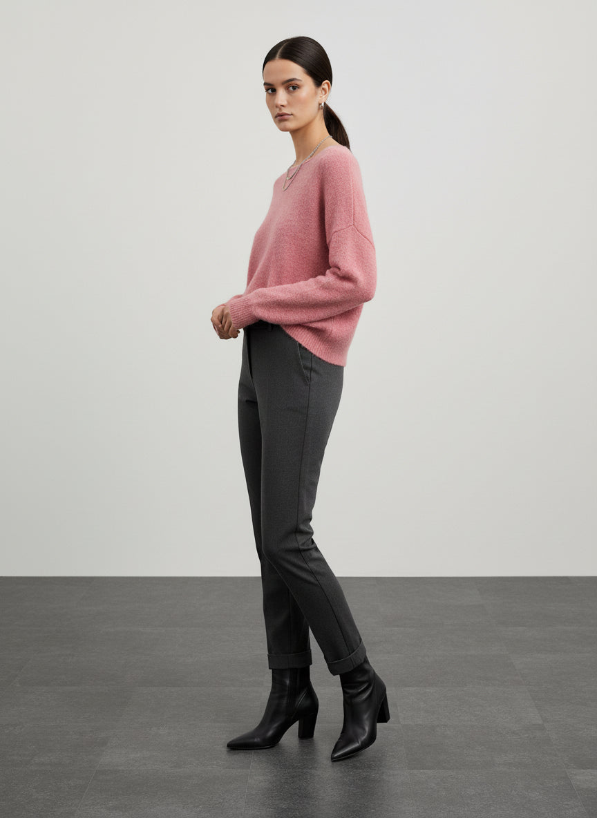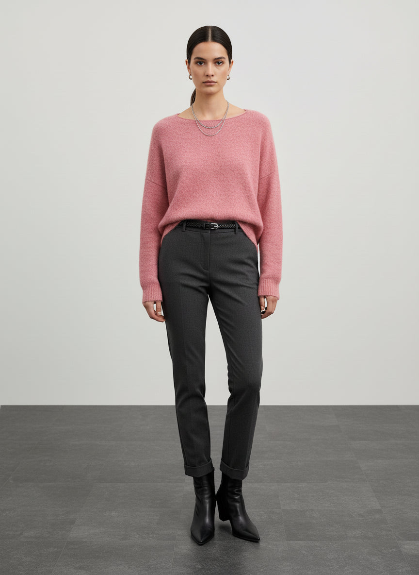 La maglia oversize con scollo rotondo è il capo ideale per affrontare le giornate più fresche con stile. Realizzata con una miscela di materiali di alta qualità, questa maglia offre una sensazione di calore e comfort senza pari. Il suo design ampio e morbido si adatta perfettamente a qualsiasi silhouette, rendendola versatile per ogni occasione. Indossala con un paio di pantaloni skinny per un look equilibrato o abbinala a una gonna midi per un tocco più femminile. La tonalità rosa delicato aggiunge un tocco di freschezza al tuo outfit, mentre il collo a V e le maniche lunghe donano un'eleganza senza tempo. Completa il tuo look con stivali alti e accessori minimalisti per un effetto chic e sofisticato. Non dimenticare di giocare con i contrasti: prova a indossarla sopra una camicia bianca per un look stratificato che non passerà inosservato. Questa maglia è perfetta anche per le serate invernali, abbinata a un blazer per un look da ufficio impeccabile. Scegli di investire in un capo che unisce comfort e stile, e preparati a ricevere complimenti ogni volta che la indossi.