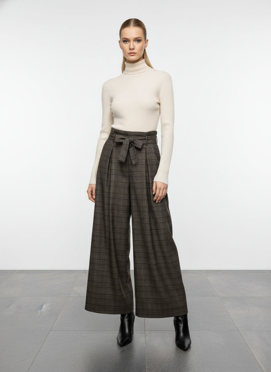 Pantalone a palazzo fantasia tartan