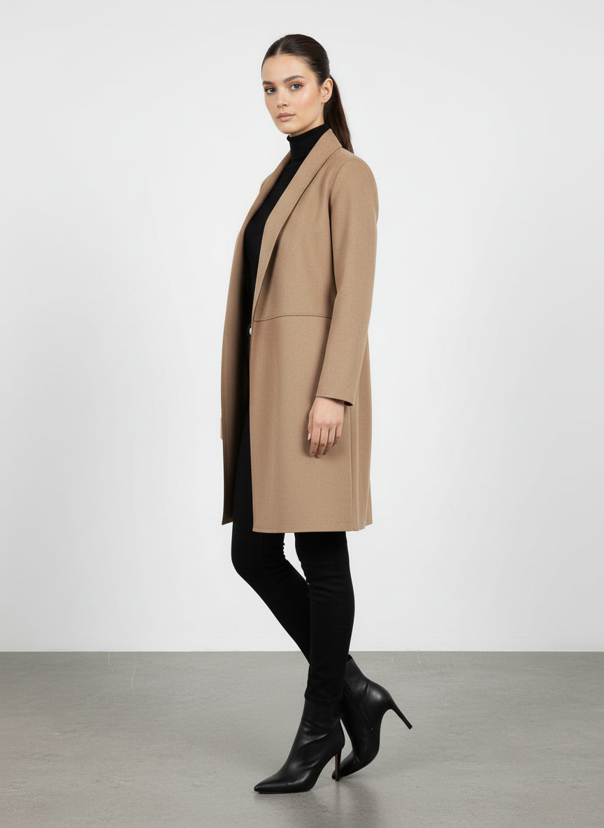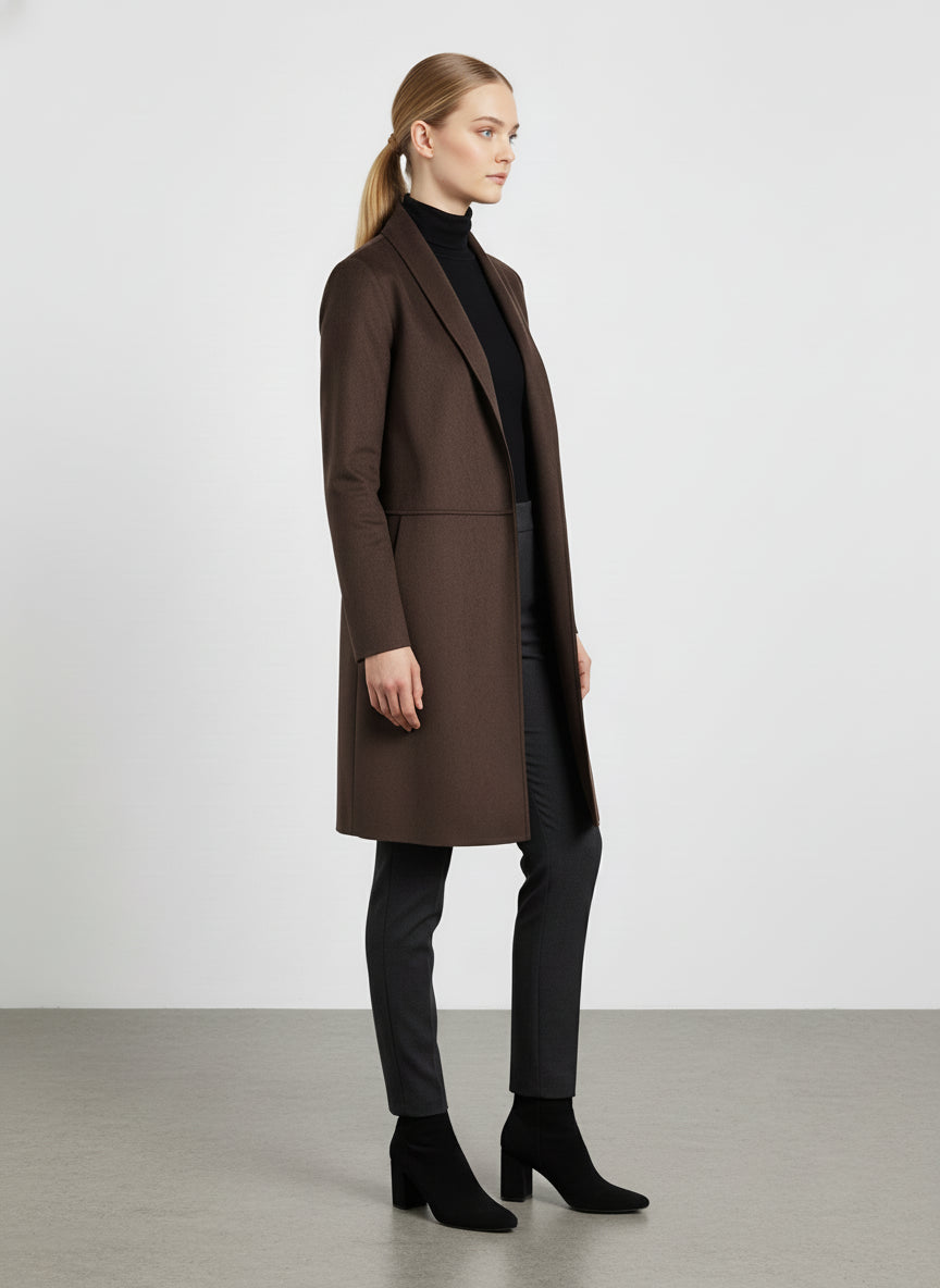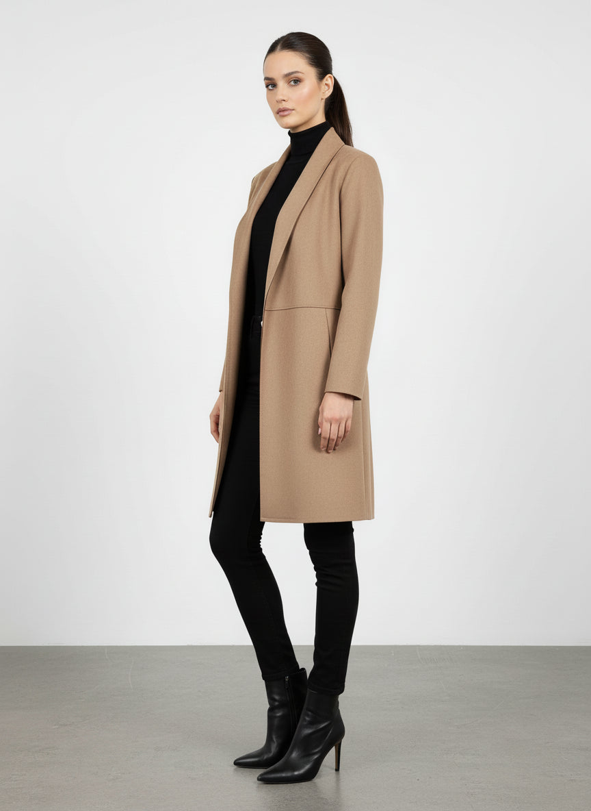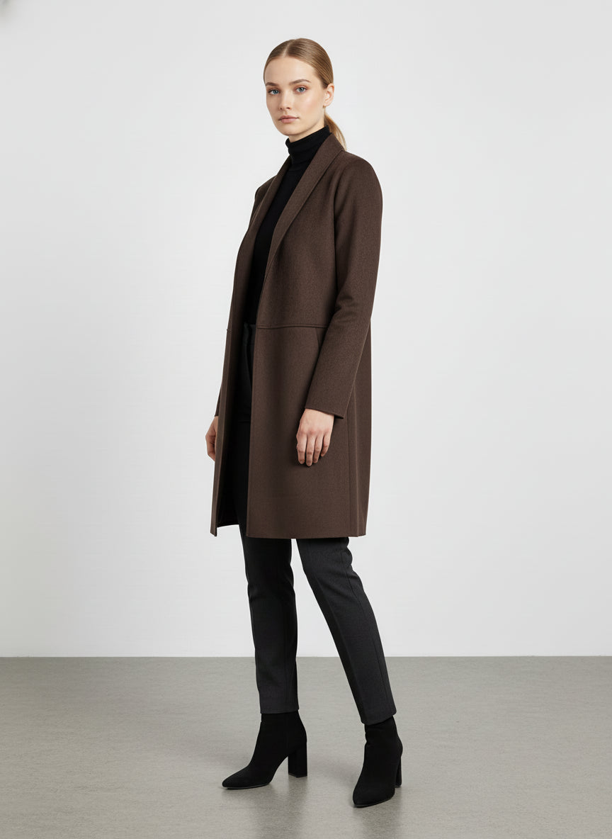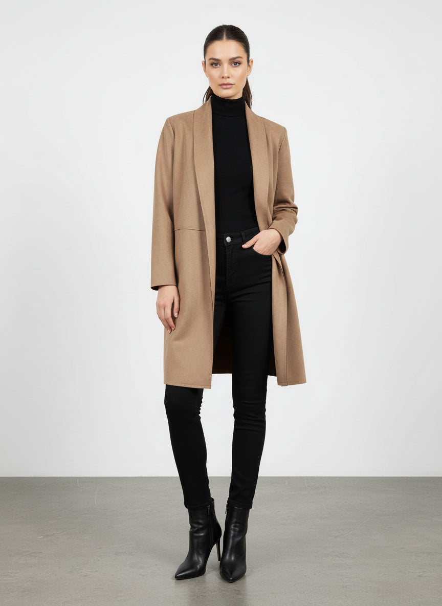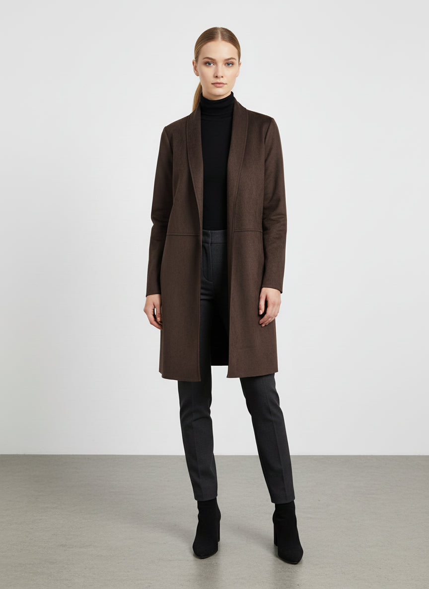 I dettagli come le maniche lunghe e la lunghezza che arriva fino al ginocchio aggiungono un tocco di eleganza, mentre la chiusura aperta consente di indossarlo in modo pratico e veloce. Questo cardigan è perfetto anche per stratificare, permettendoti di affrontare le temperature più fredde senza rinunciare al tuo stile.