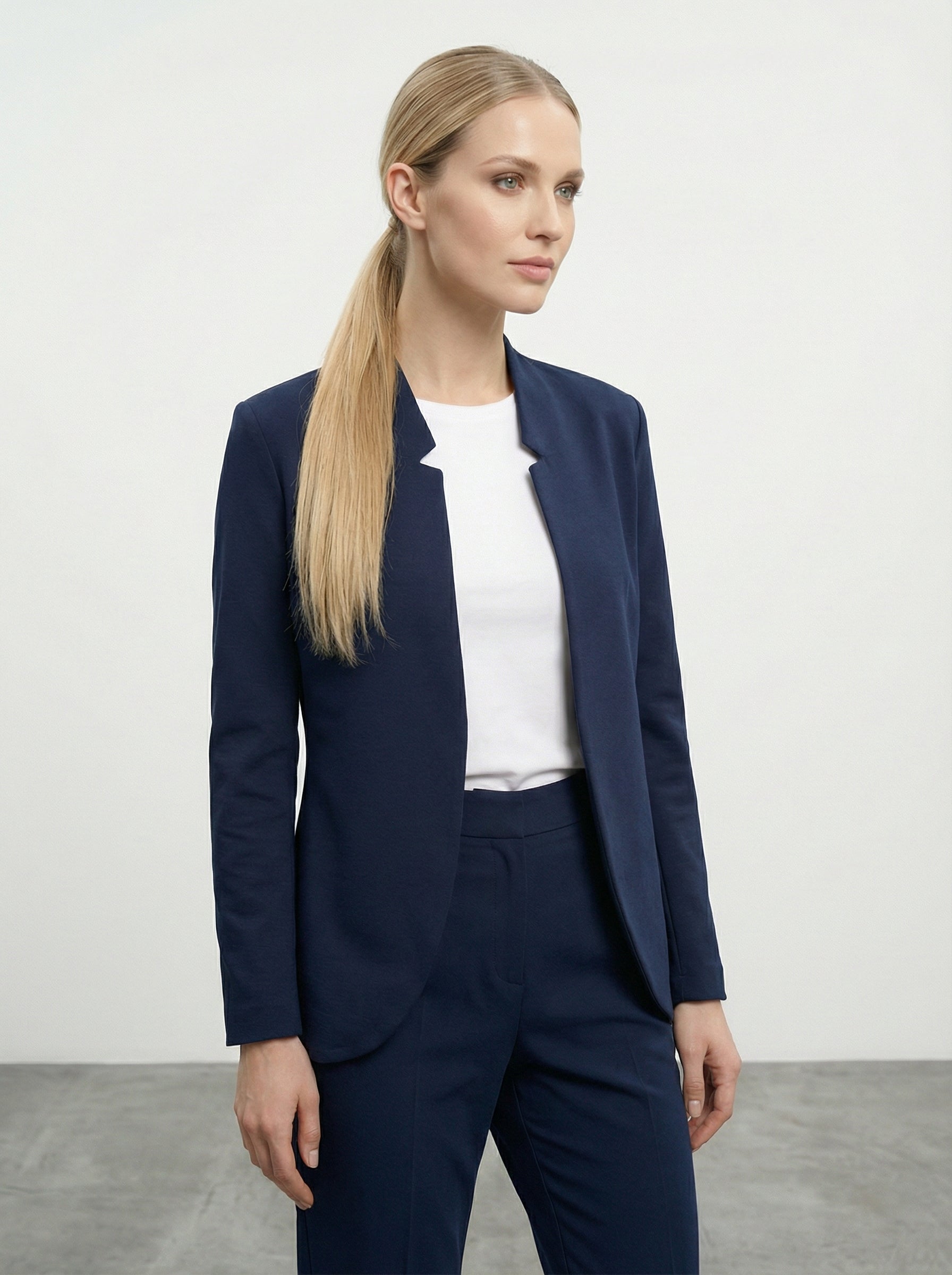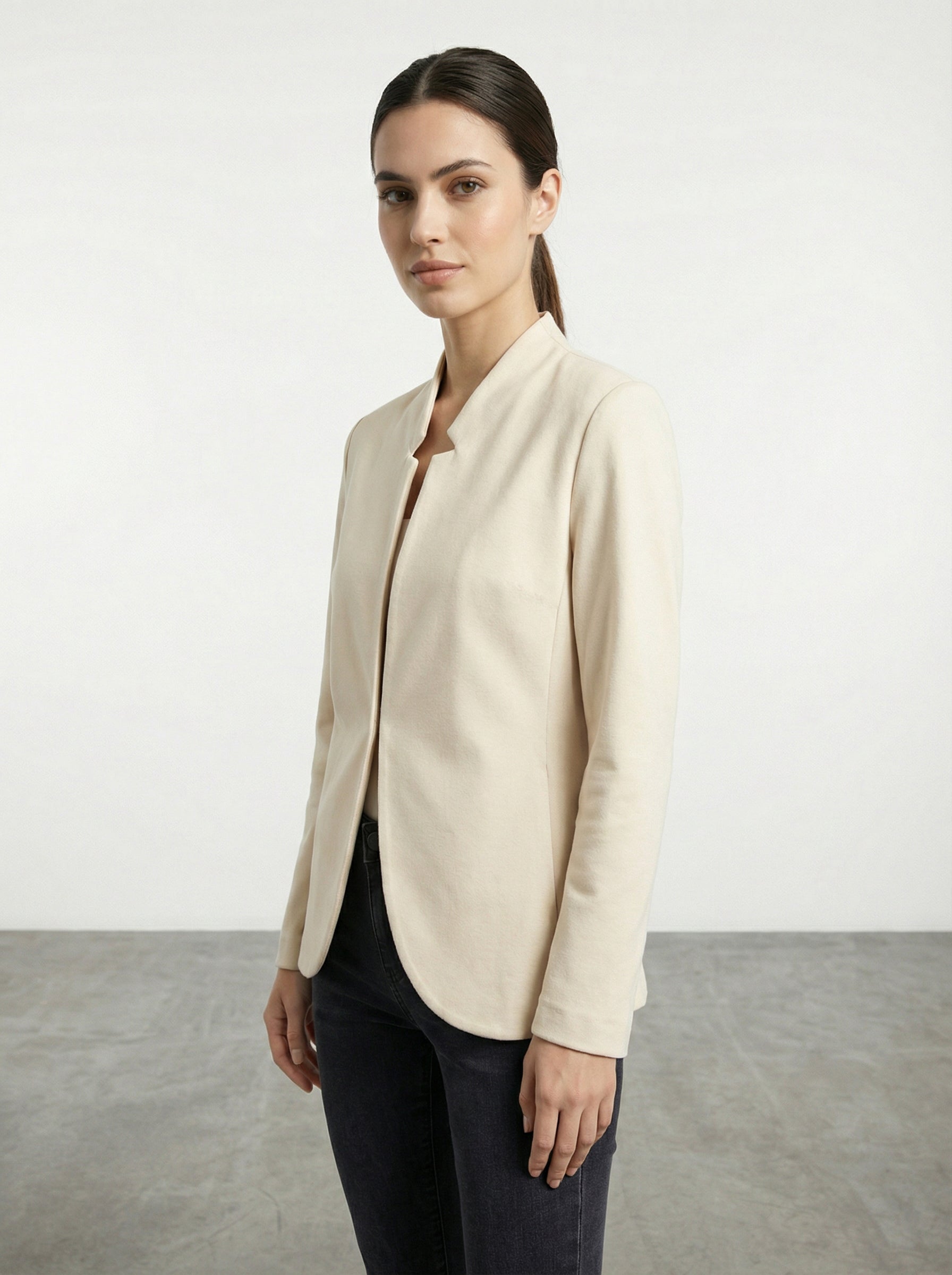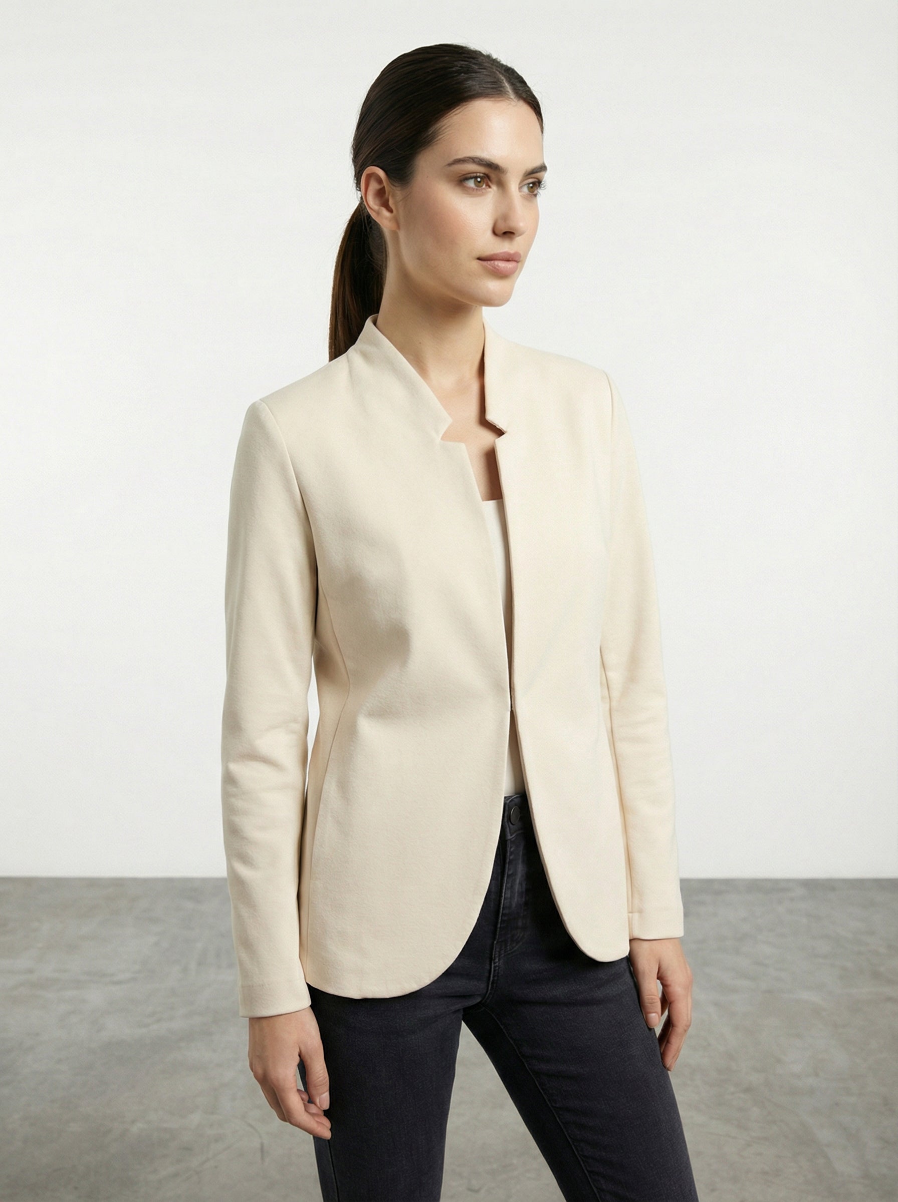 La giacca slim fit elegante è l'aggiunta perfetta al tuo guardaroba primaverile. Realizzata in cotone di alta qualità, questa giacca offre una vestibilità impeccabile che esalta la silhouette femminile. Il suo design minimalista è arricchito da dettagli sofisticati, come il colletto alla coreana e le linee pulite, che la rendono adatta a molteplici occasioni, dal lavoro a un aperitivo con le amiche.