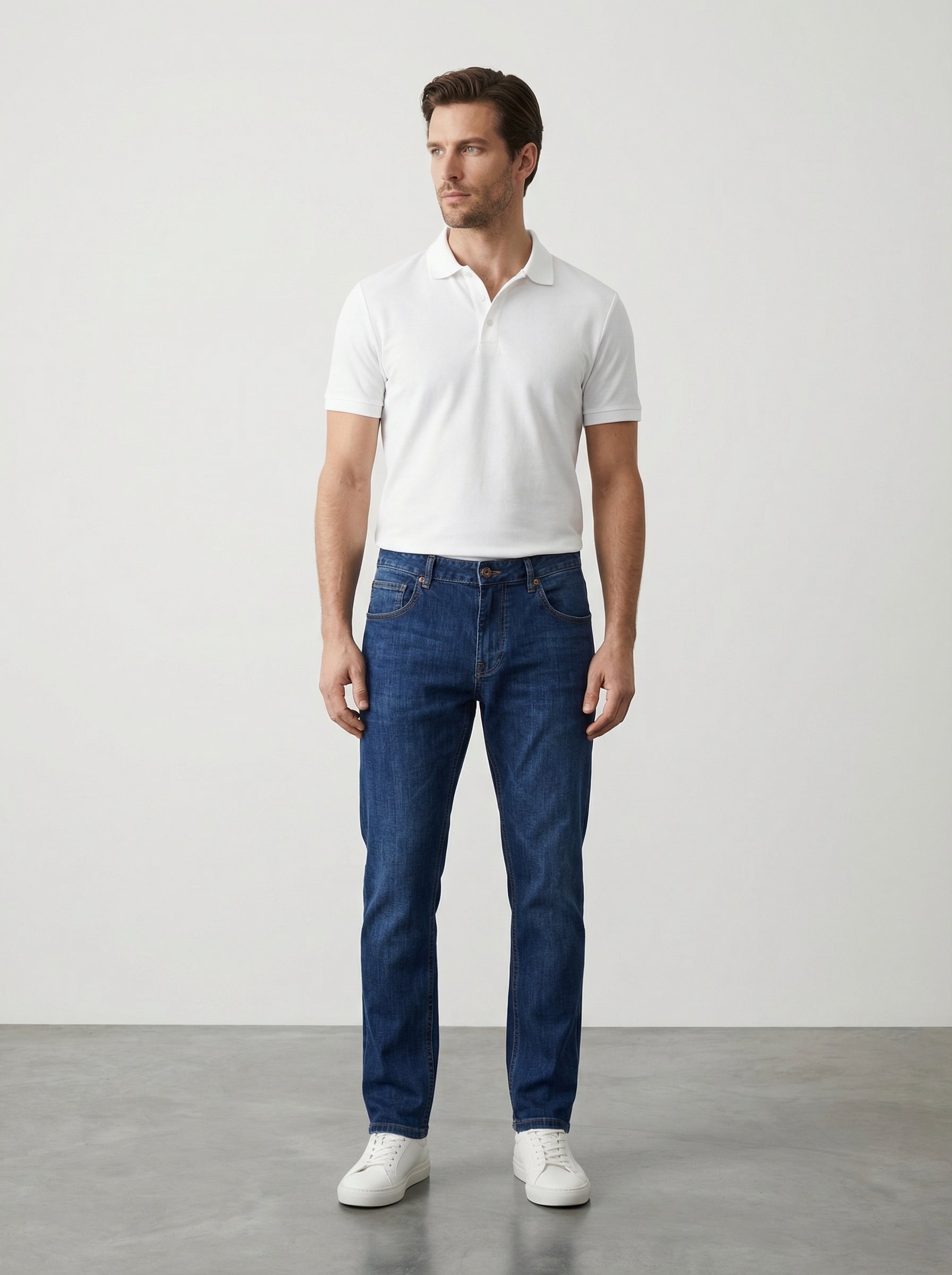 La tela denim di questi jeans incarna l'essenza della moda casual-chic, un capo fondamentale che trascende le stagioni con un'eleganza intrinseca e mai ostentata. Realizzati in puro cotone di alta qualità, avvolgono la silhouette con una vestibilità regular fit impeccabile, che accarezza le gambe senza costringere, offrendo una libertà di movimento ineguagliabile e un comfort che dura tutto il giorno. I dettagli, come le classiche cinque tasche rinforzate e la chiusura a bottone e cerniera, sono espressione di una manifattura attenta e di un design pensato per durare. Immagina di indossarli con una camicia in lino leggera per un brunch estivo o con un blazer sartoriale e una polo in cotone piqué per un aperitivo in città; la loro versatilità li rende perfetti per un look disinvolto con sneakers in pelle o sofisticato con mocassini. Aggiungi una cintura in cuoio e un orologio minimale per definire ulteriormente lo stile. Questi jeans non sono solo un indumento, ma una dichiarazione di stile, un invito a vivere ogni momento con disinvoltura e un tocco di classe, un investimento nel tuo guardaroba che si adatta a ogni tua storia, rendendo ogni outfit distintivo e personale.