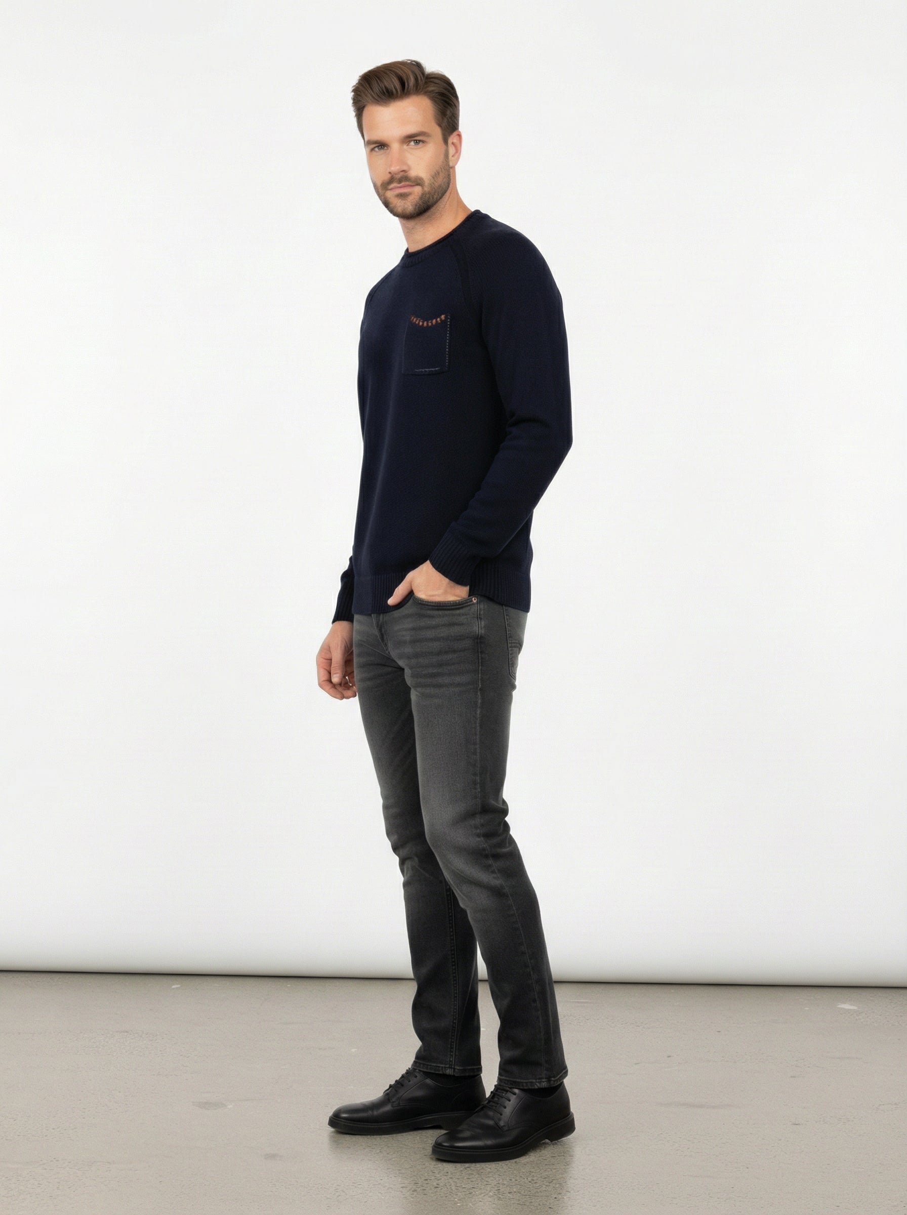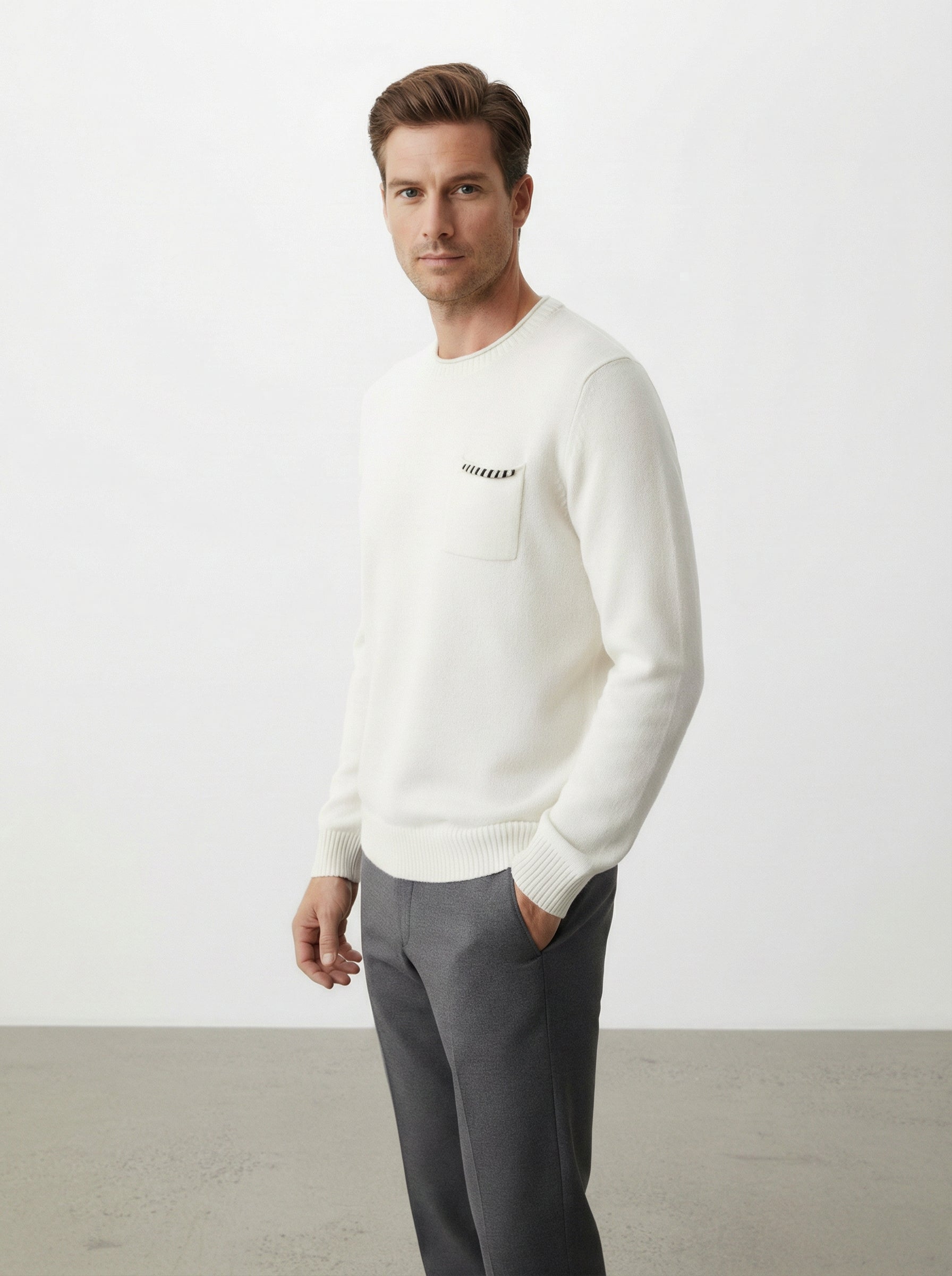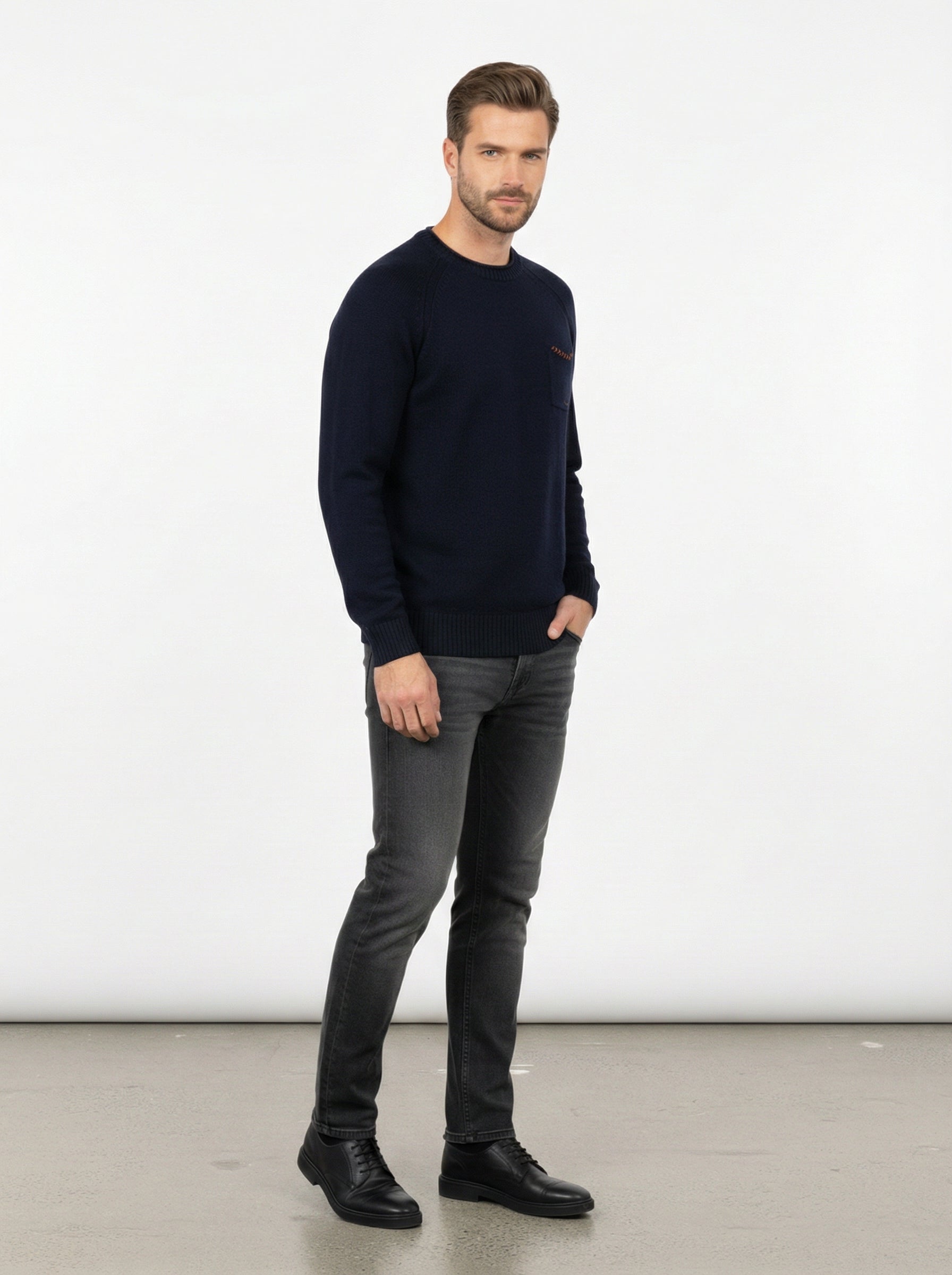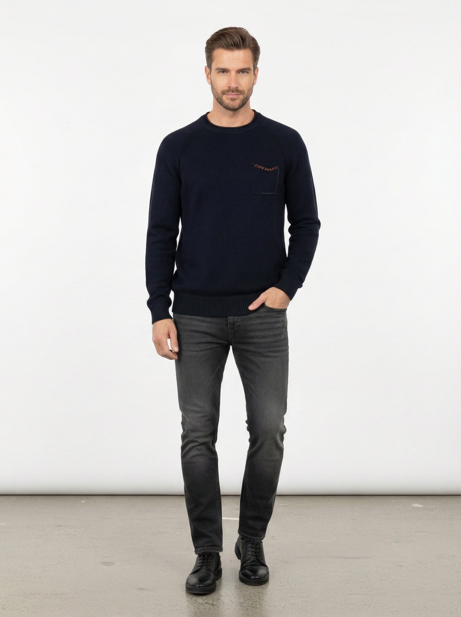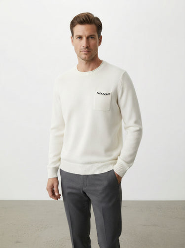 La maglia in cotone e lana è un must-have per il guardaroba maschile, perfetta per affrontare le fresche giornate autunnali e invernali. Realizzata con una miscela di cotone al 60% e lana al 40%, offre una sensazione di calore e morbidezza al tatto, rendendola ideale per chi cerca comfort senza rinunciare allo stile. Il design presenta un colletto rotondo e una tasca sul petto con dettagli a contrasto, che aggiungono un tocco di originalità al capo.