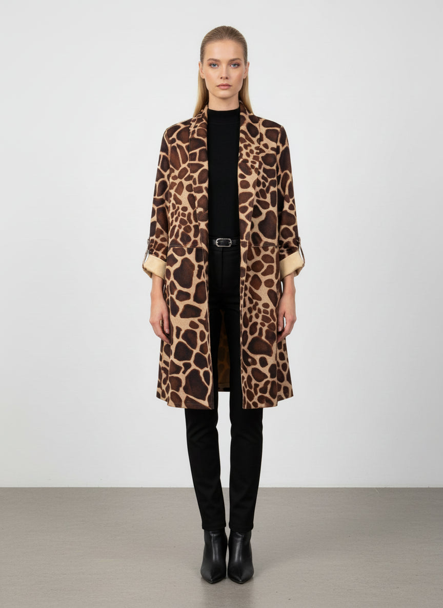 Il cardigan animalier elegante è il must-have della stagione. Con la sua stampa giraffa e il taglio raffinato, aggiunge un tocco di stile a qualsiasi outfit.