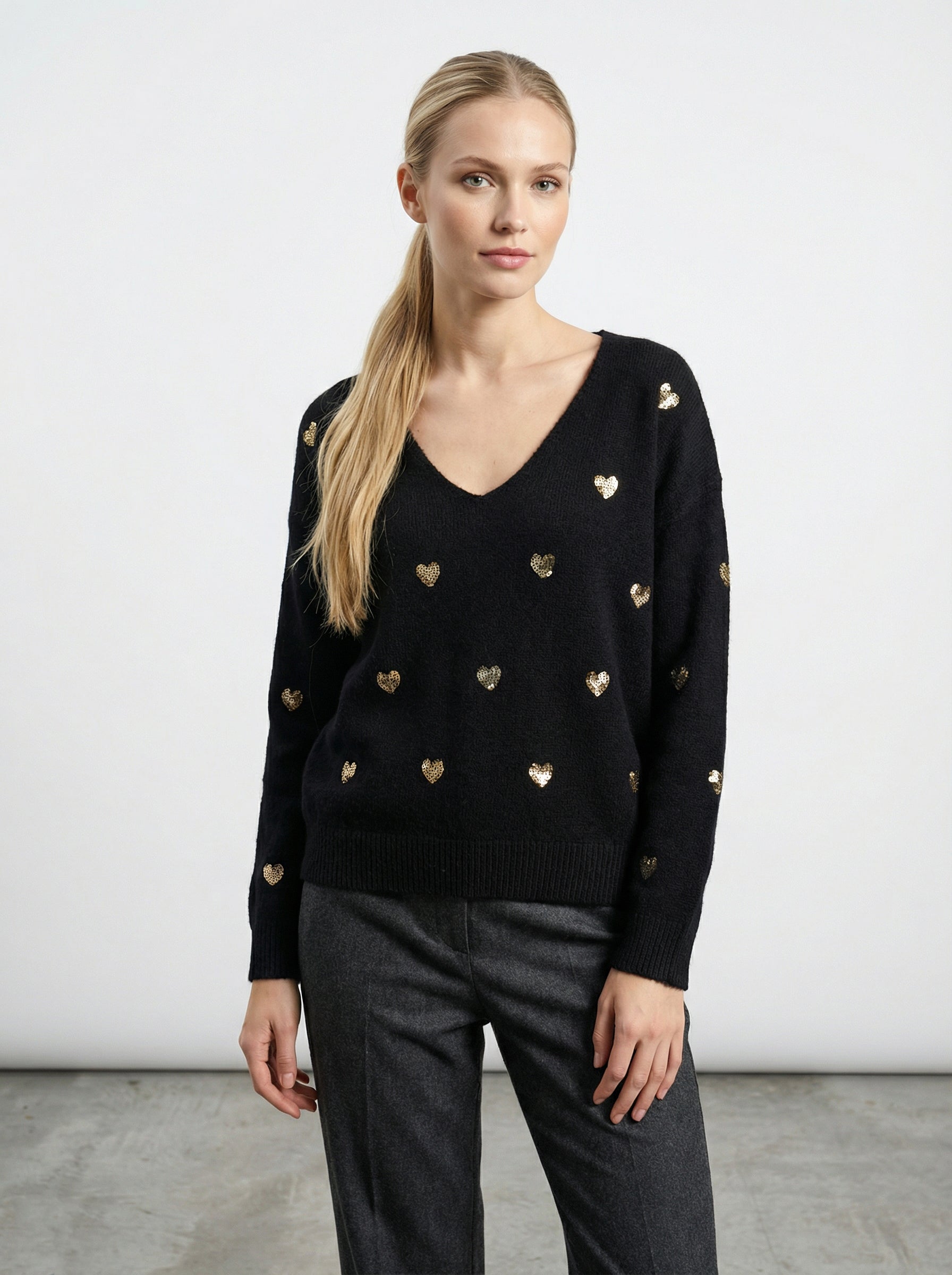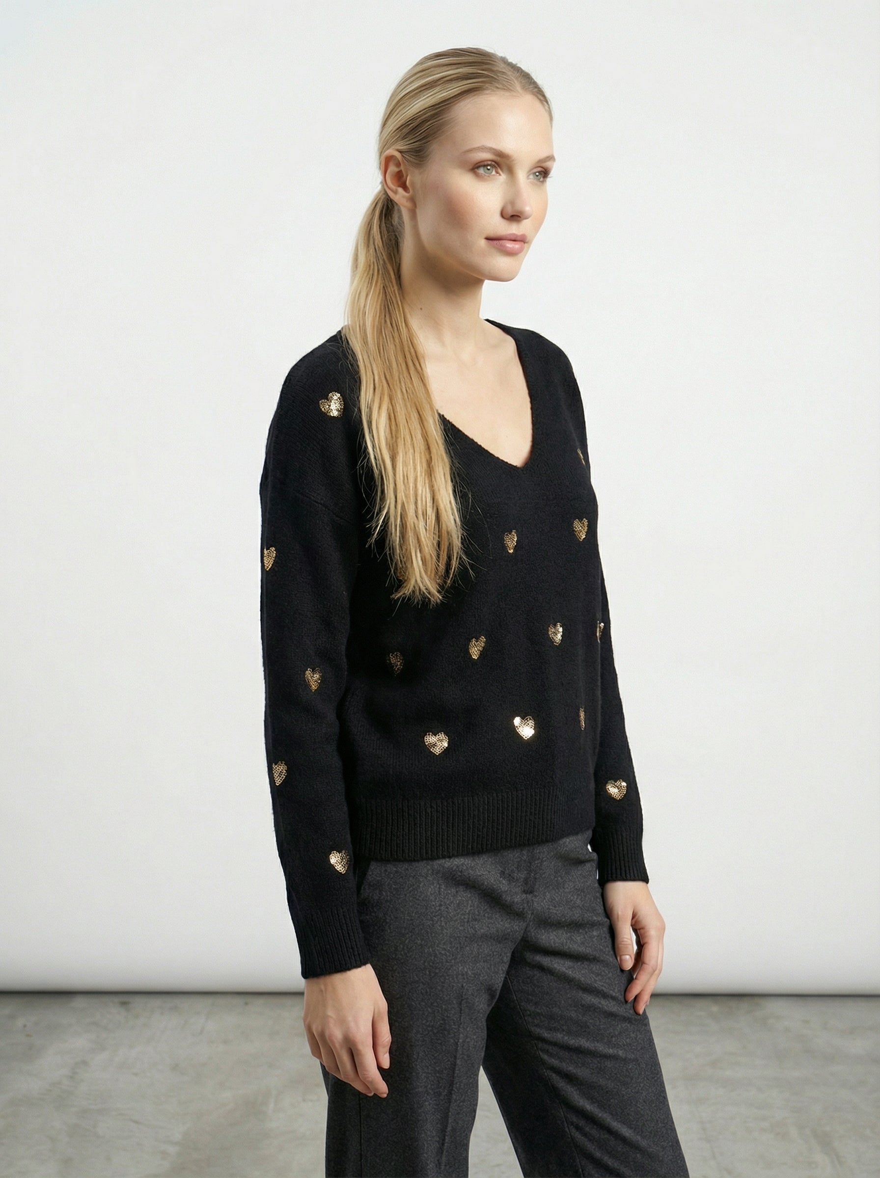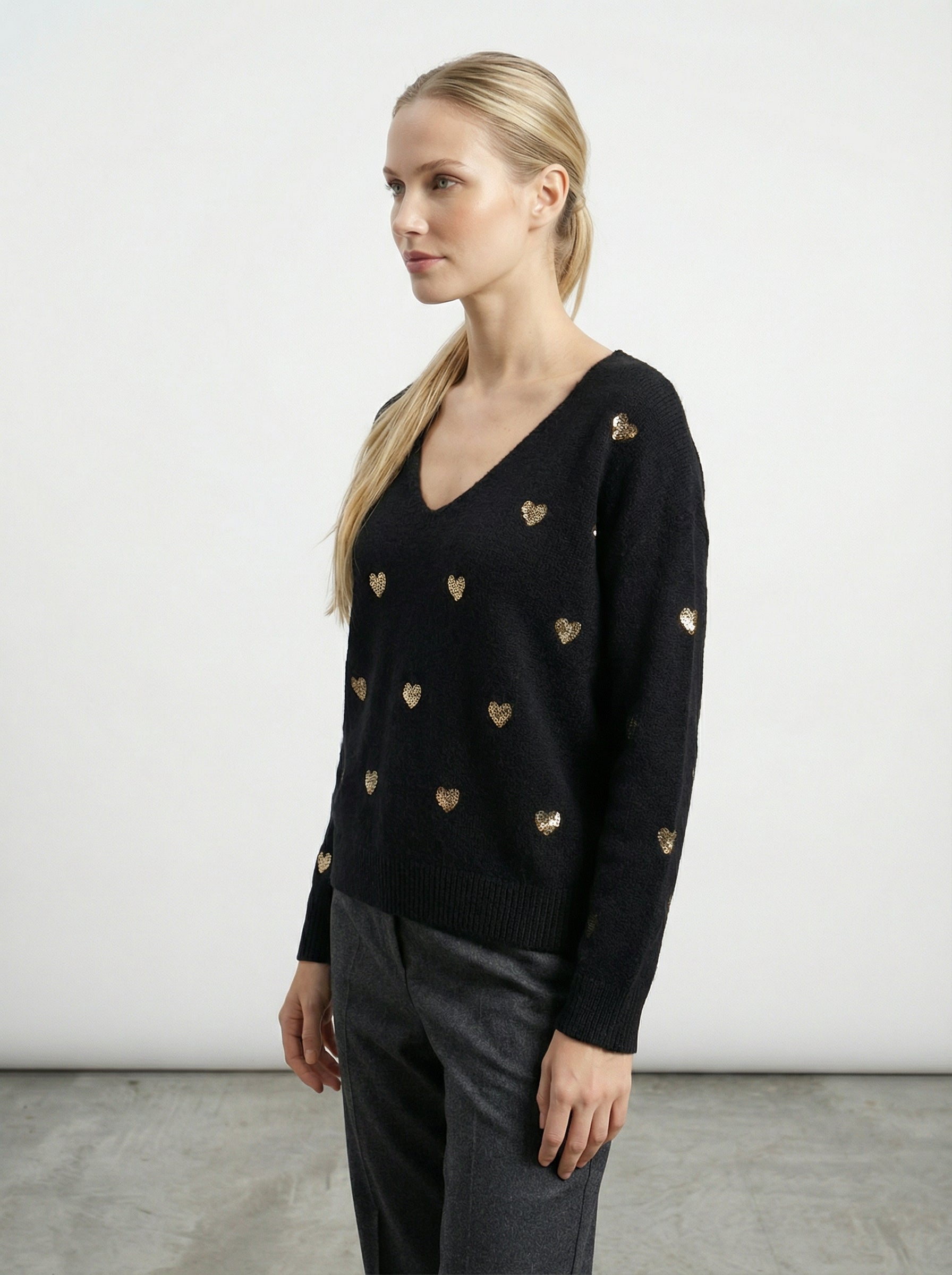 Maglia con cuori in paillettes