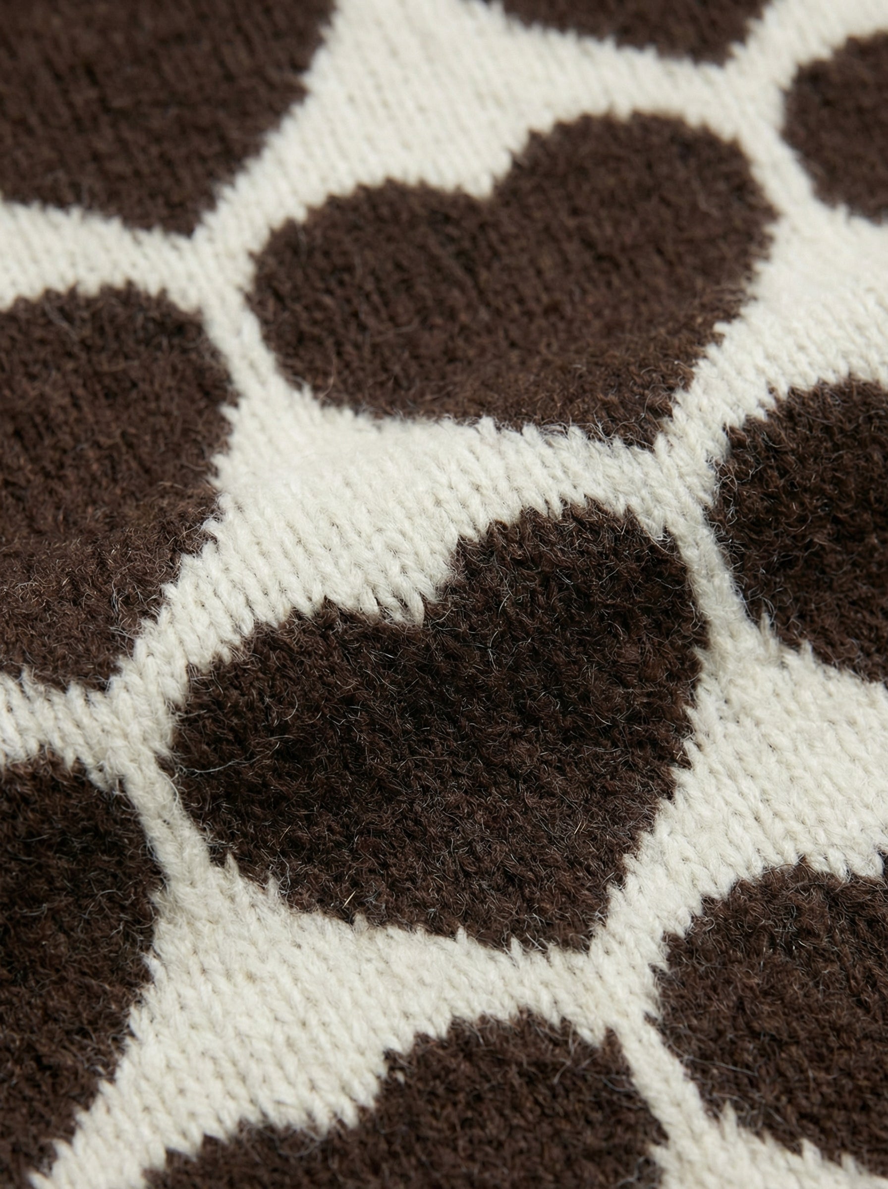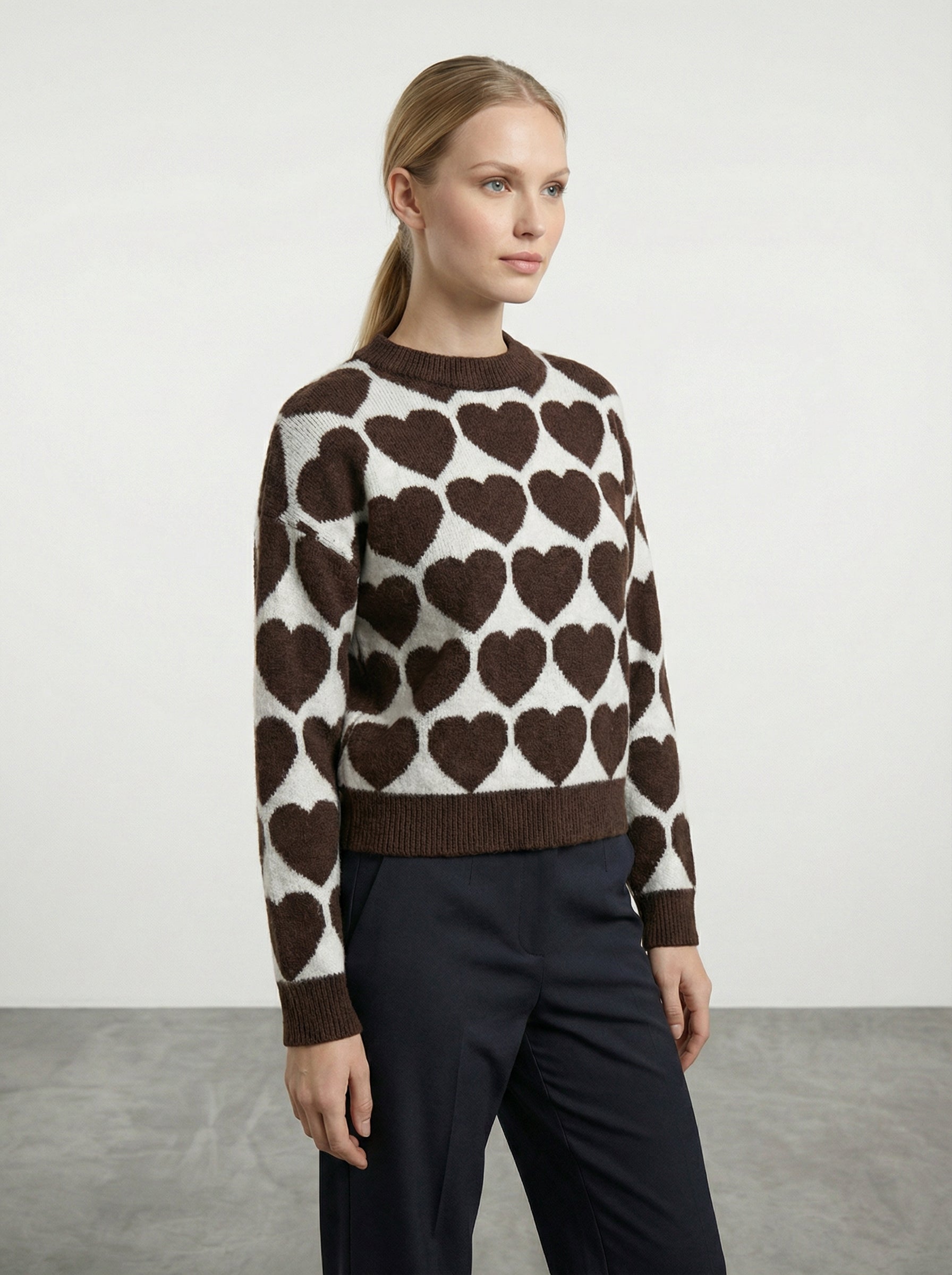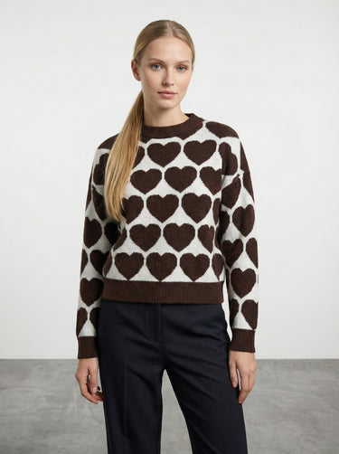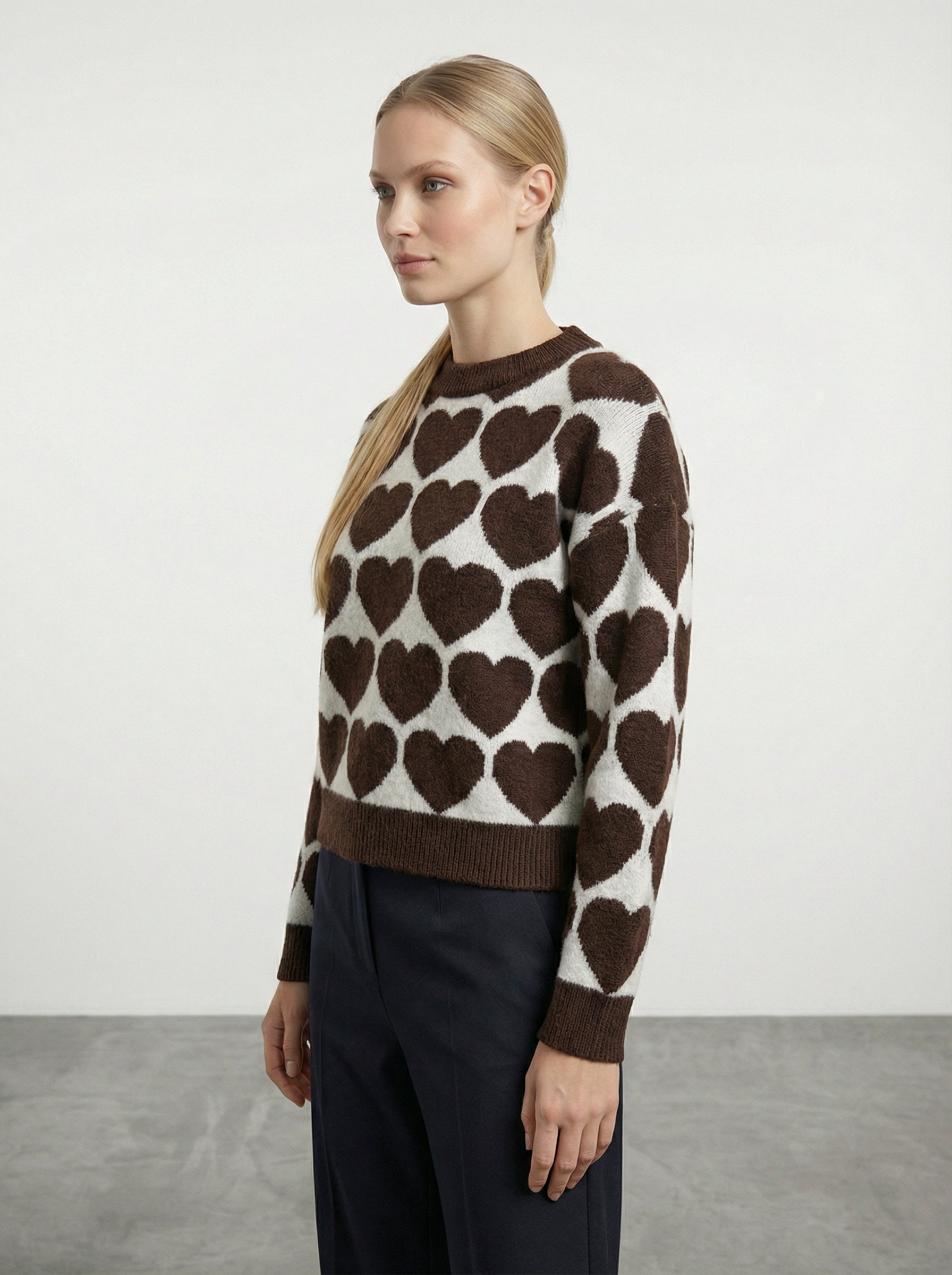 La maglia con cuori oversize è il must-have di questa stagione. Realizzata in una morbida miscela di viscosa e lana, offre comfort e stile in ogni occasione.
