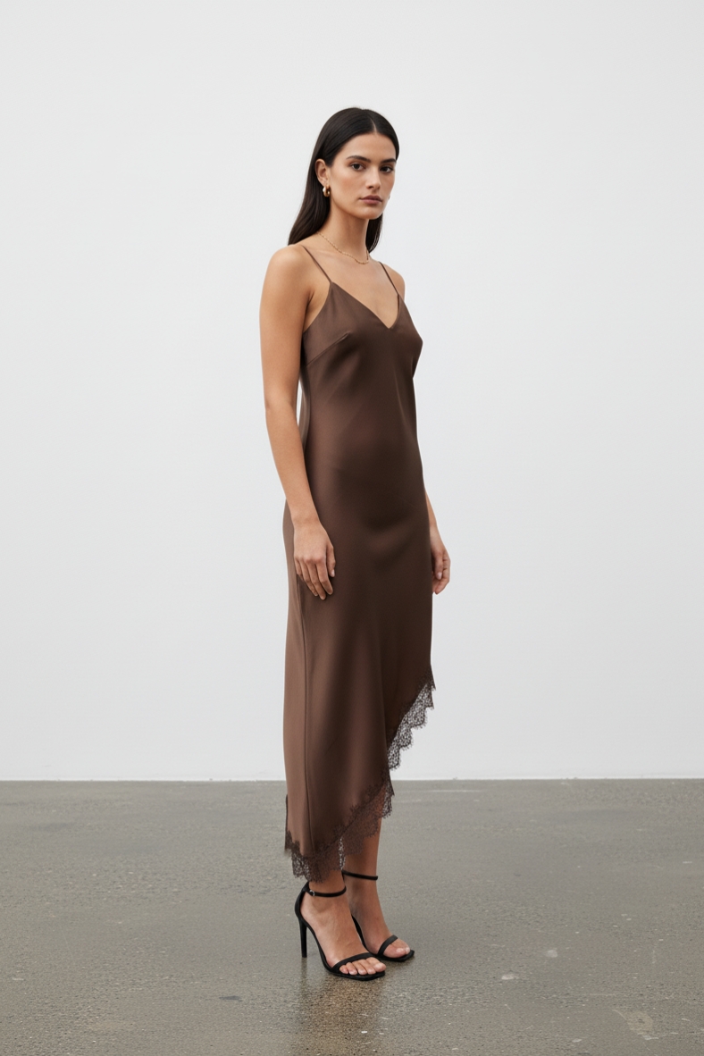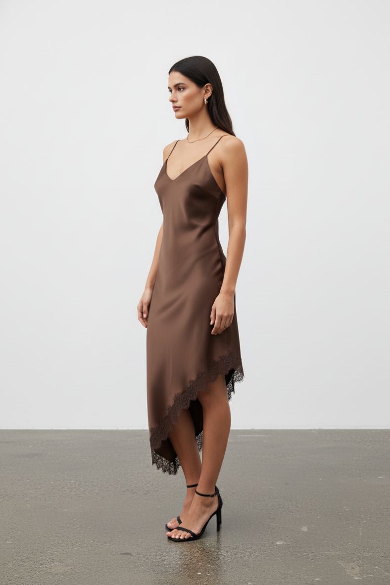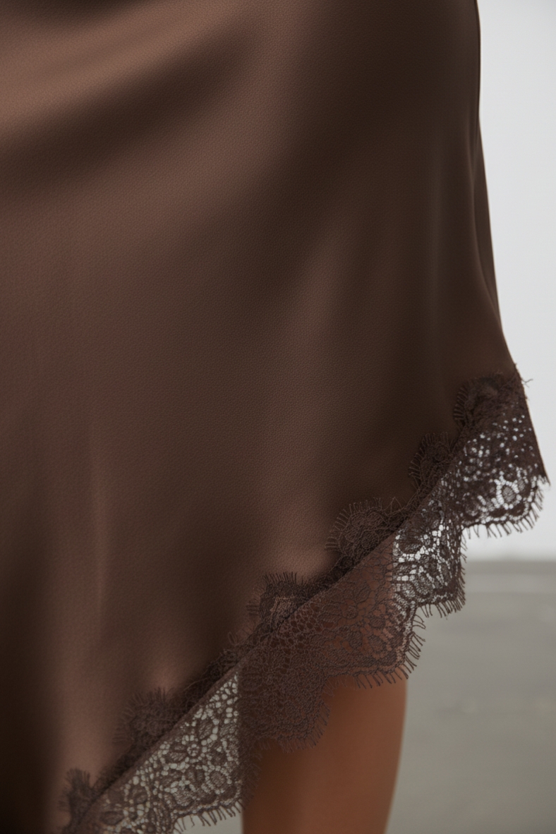 L'abito satinato con pizzo è un must-have per ogni guardaroba. La sua silhouette fluida e il delicato pizzo lo rendono ideale per serate eleganti e eventi speciali.
