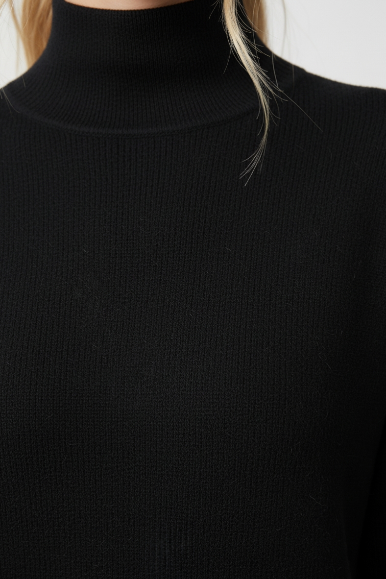 Questo abito in maglia con collo alto è un must-have per il tuo guardaroba autunnale. Realizzato in una morbida miscela di viscosa, offre comfort e stile in ogni occasione.