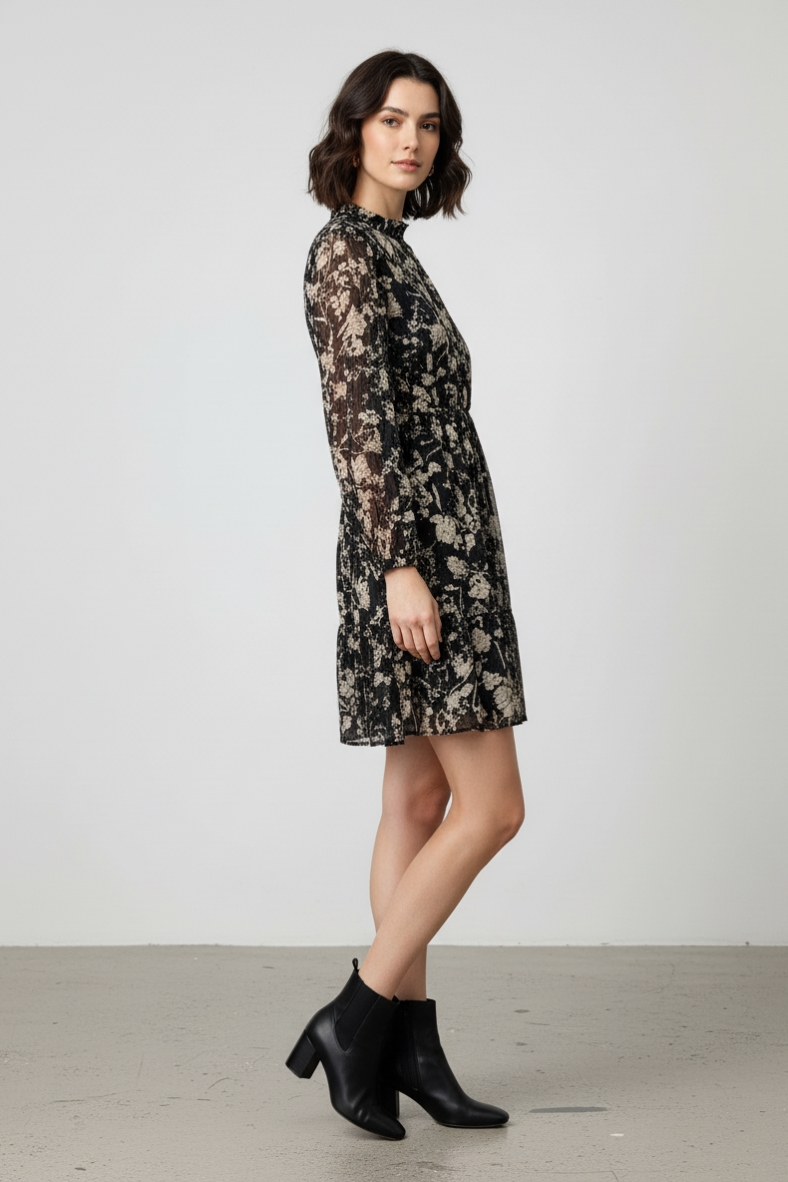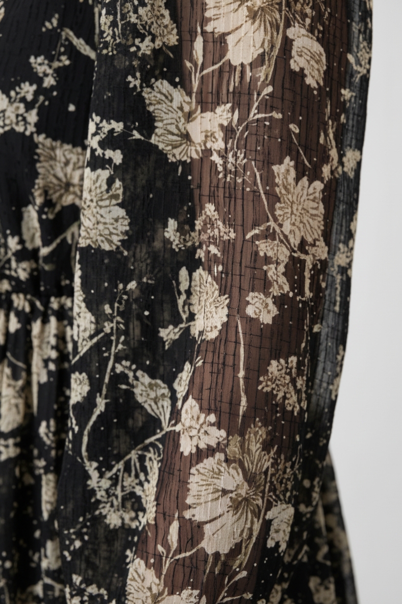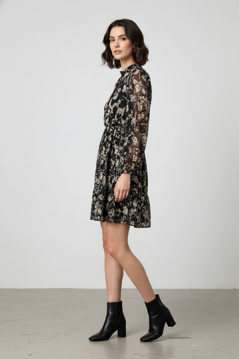 L’abito floreale con dettagli in velluto è un must-have per la stagione autunnale. Realizzato in un tessuto leggero e morbido, questo capo si distingue per il suo design romantico e femminile. La fantasia floreale, delicata e raffinata, aggiunge un tocco di freschezza al tuo guardaroba, mentre le maniche a sbuffo donano un’aria vintage e sofisticata. La vita elastica valorizza la silhouette, creando un effetto slanciato e aggraziato.