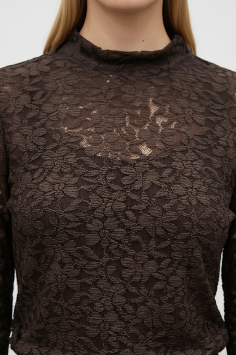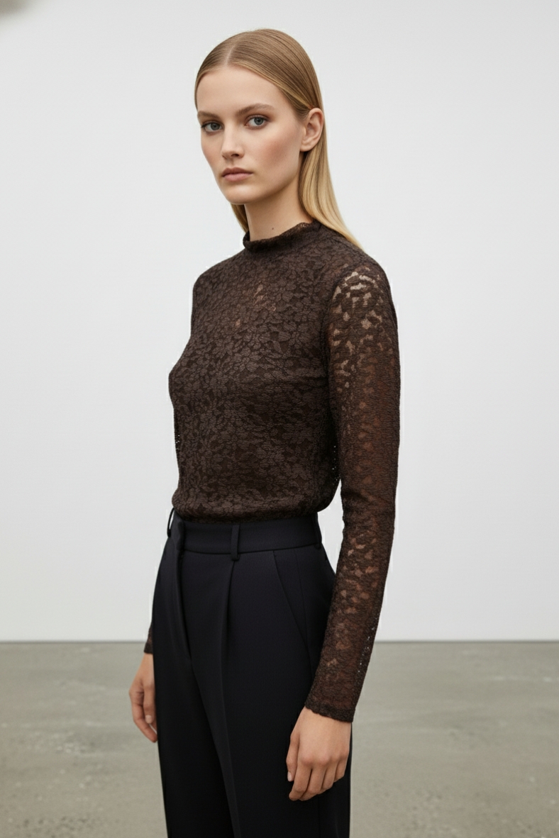 Questa blusa in pizzo elegante è un must-have per ogni donna che desidera unire comfort e stile. Realizzata in fibre naturali, è perfetta per le serate autunnali.