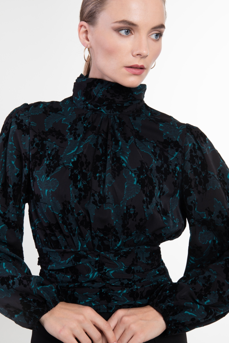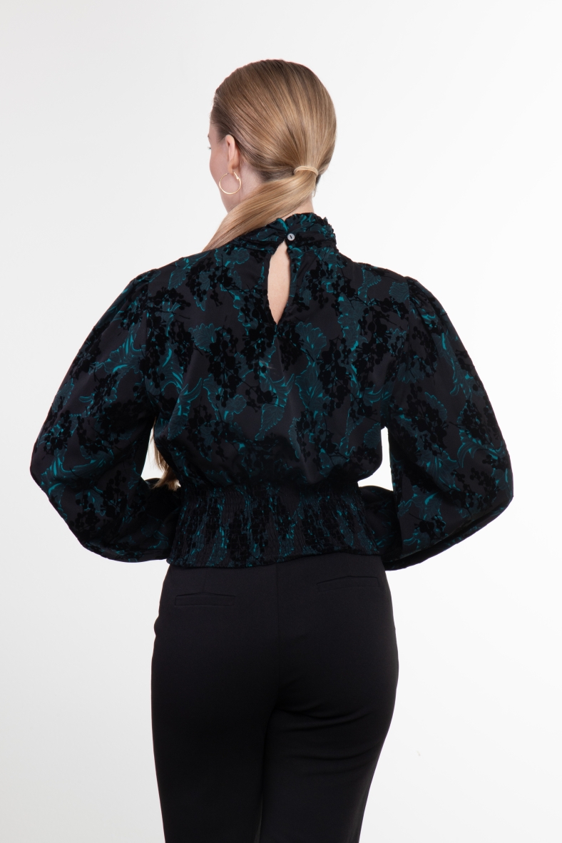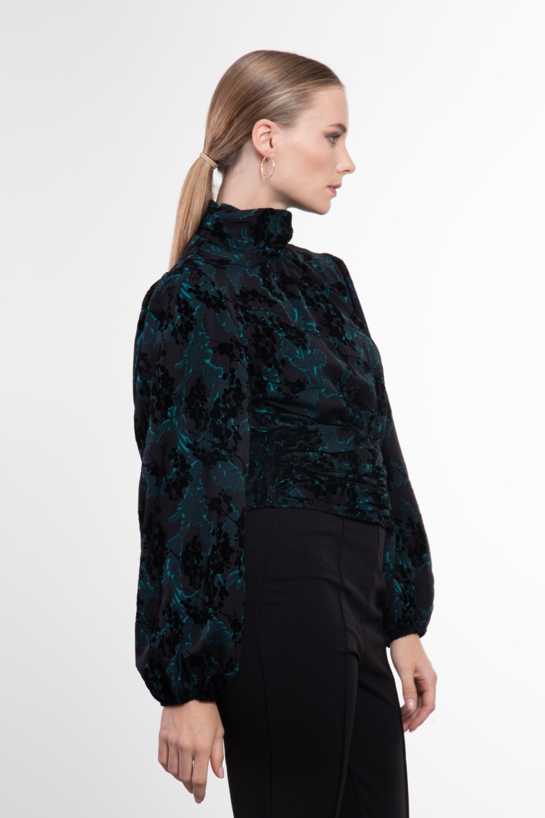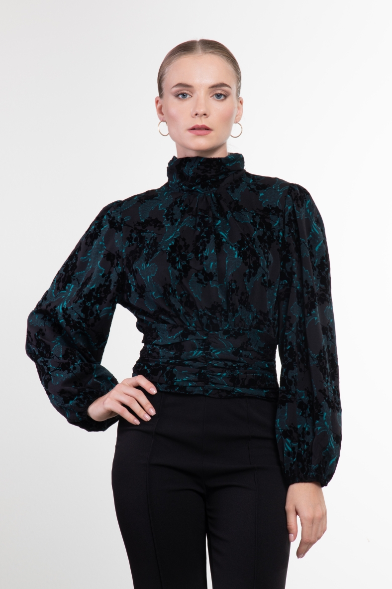 La blusa elegante con maniche voluminose e dettagli in velluto è un capo che non può mancare nel guardaroba di ogni donna attenta alla moda. Caratterizzata da un design raffinato e da un tessuto di alta qualità, questa blusa è perfetta per le serate in città o per un incontro di lavoro. Le maniche voluminose aggiungono un tocco di originalità, mentre il colletto alto conferisce un’aria sofisticata e contemporanea.