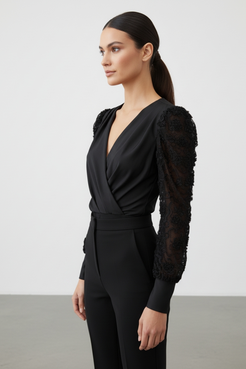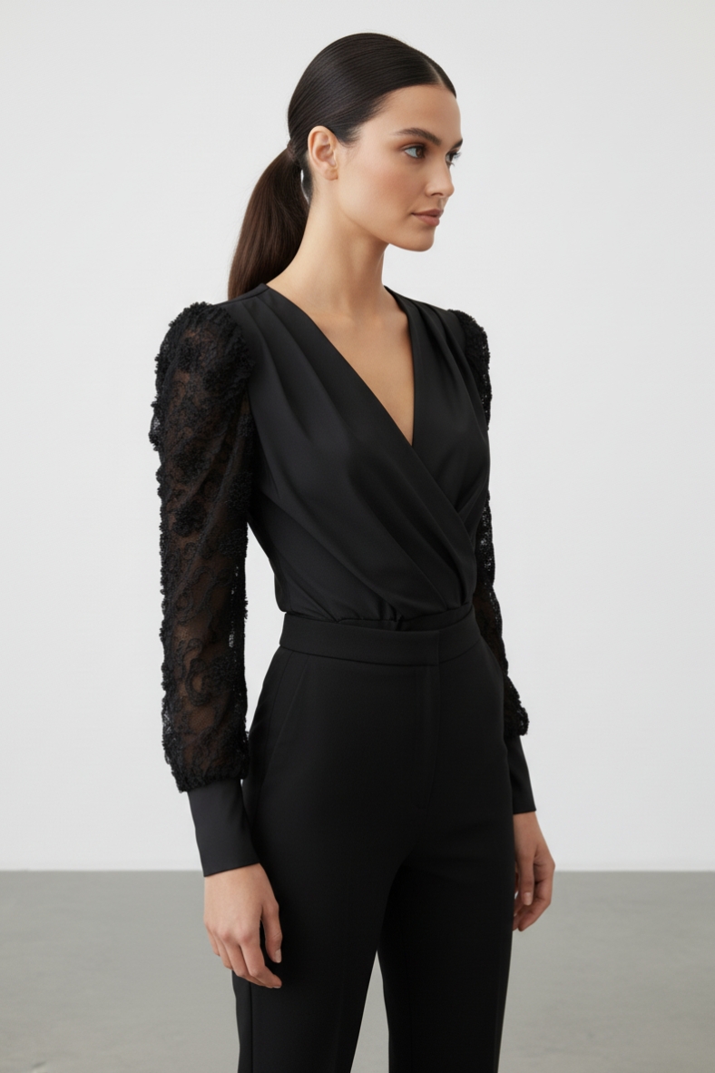 Non dimenticare di abbinare il tuo body a un blazer oversize per un look da ufficio sofisticato, oppure a una gonna midi per un’uscita serale. Con il body elegante con maniche in pizzo, ogni outfit diventa un’affermazione di stile.