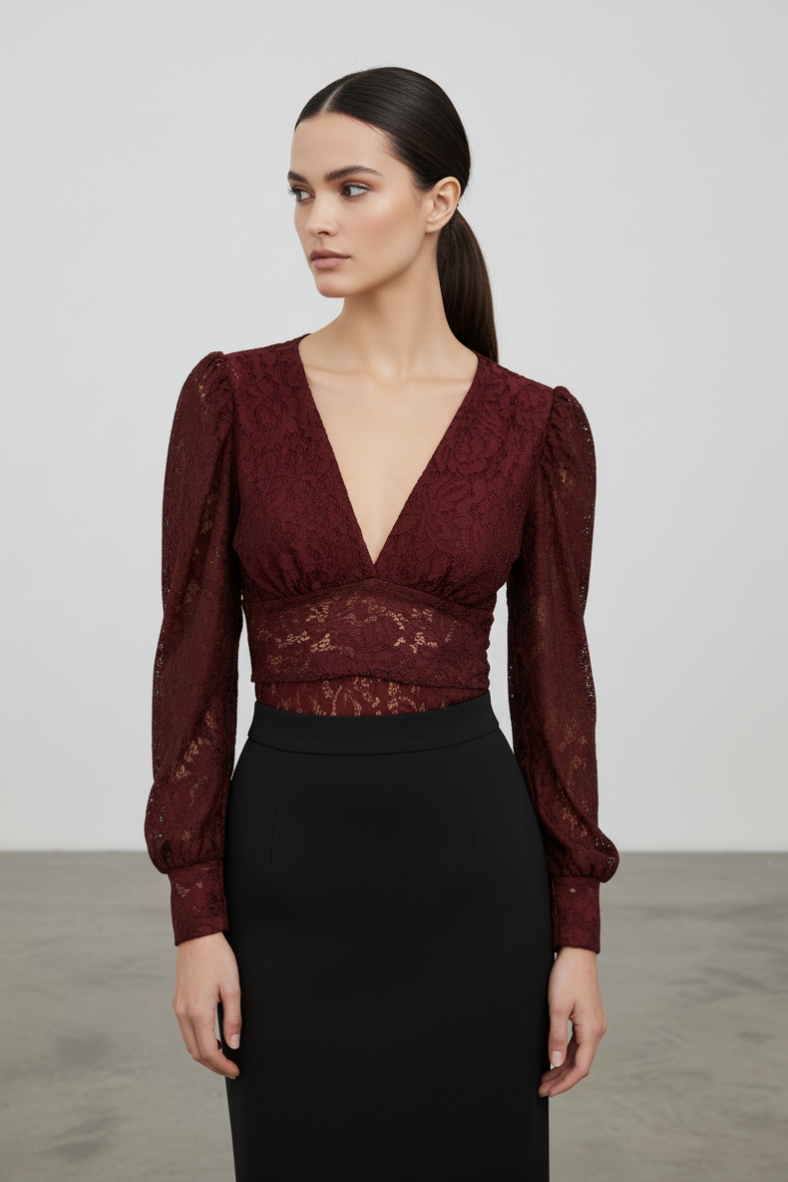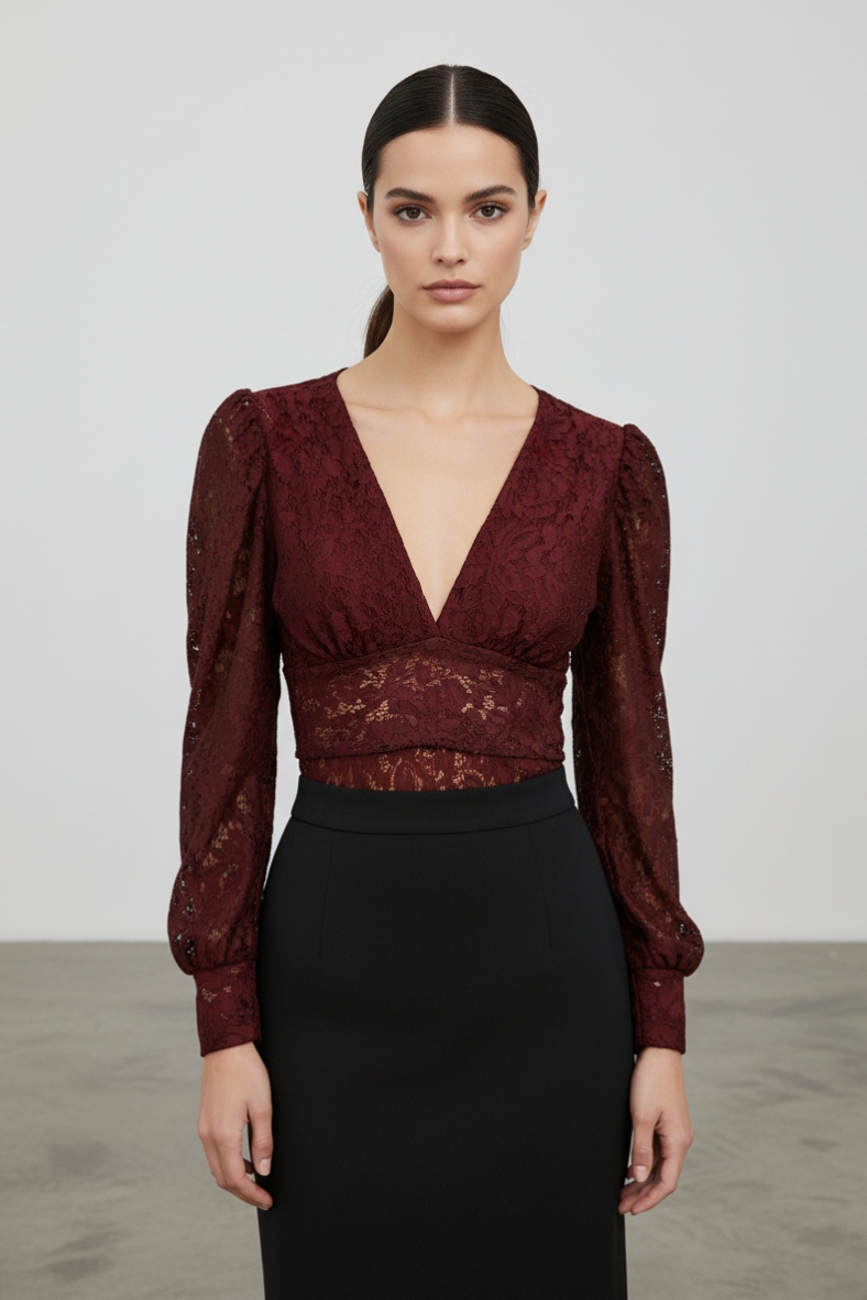 Il body in pizzo è il capo che non può mancare nel tuo armadio per la stagione autunnale. Realizzato in un tessuto di alta qualità, questo body presenta una scollatura a V che esalta il décolleté, mentre le maniche a sbuffo aggiungono un tocco di romanticismo e femminilità. La sua vestibilità aderente mette in risalto la silhouette, rendendolo perfetto per ogni occasione, da una cena elegante a un evento speciale.