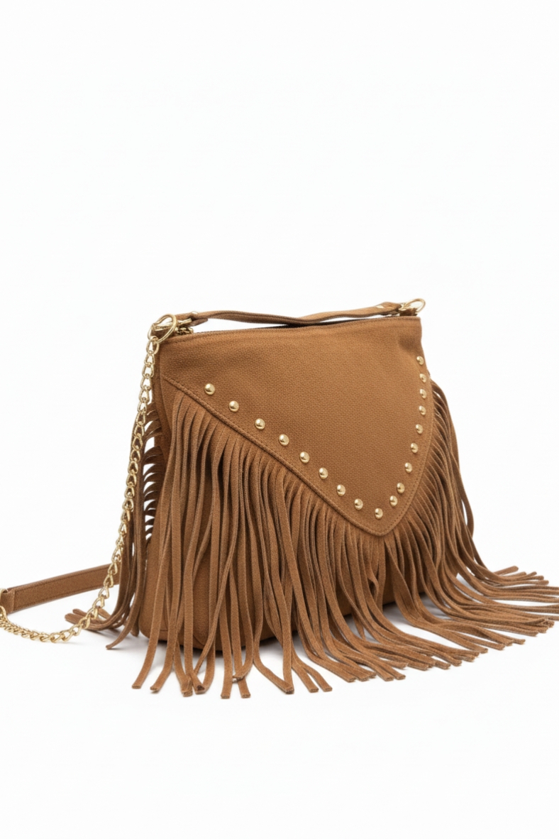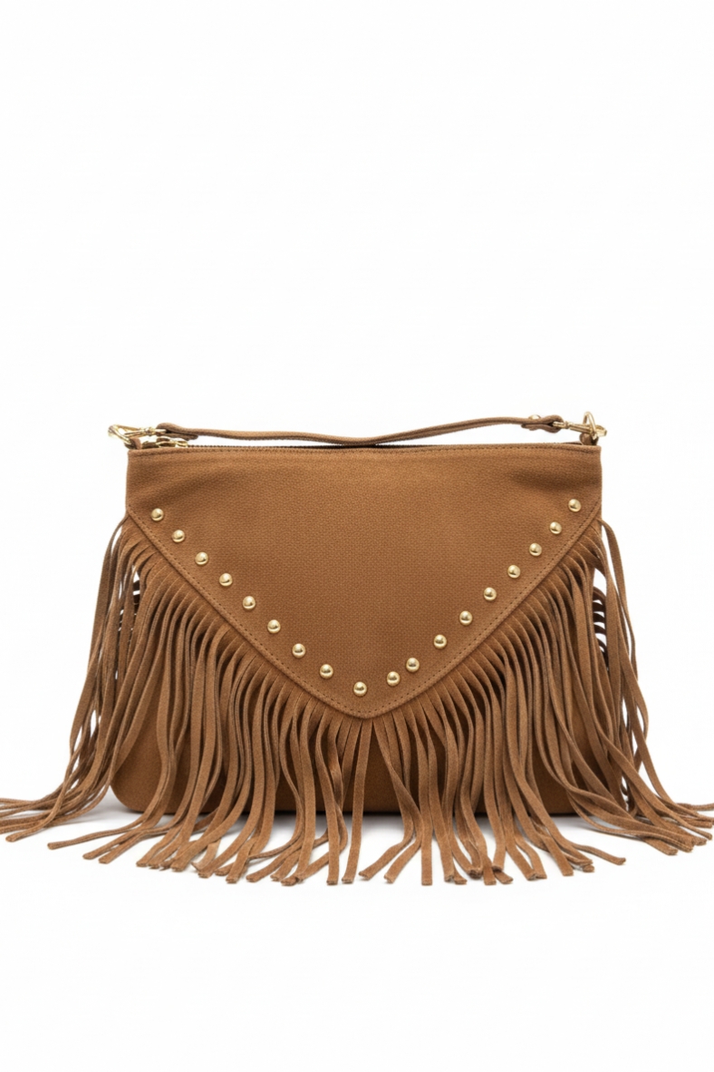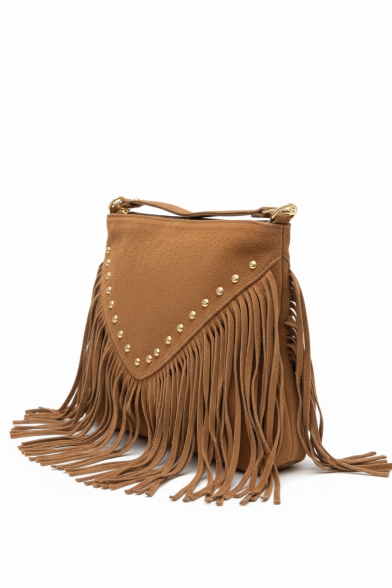 Aggiungi un tocco di stile al tuo guardaroba con la nostra borsa in pelle con frange. Realizzata in pelle 100%, è l'accessorio perfetto per ogni occasione.