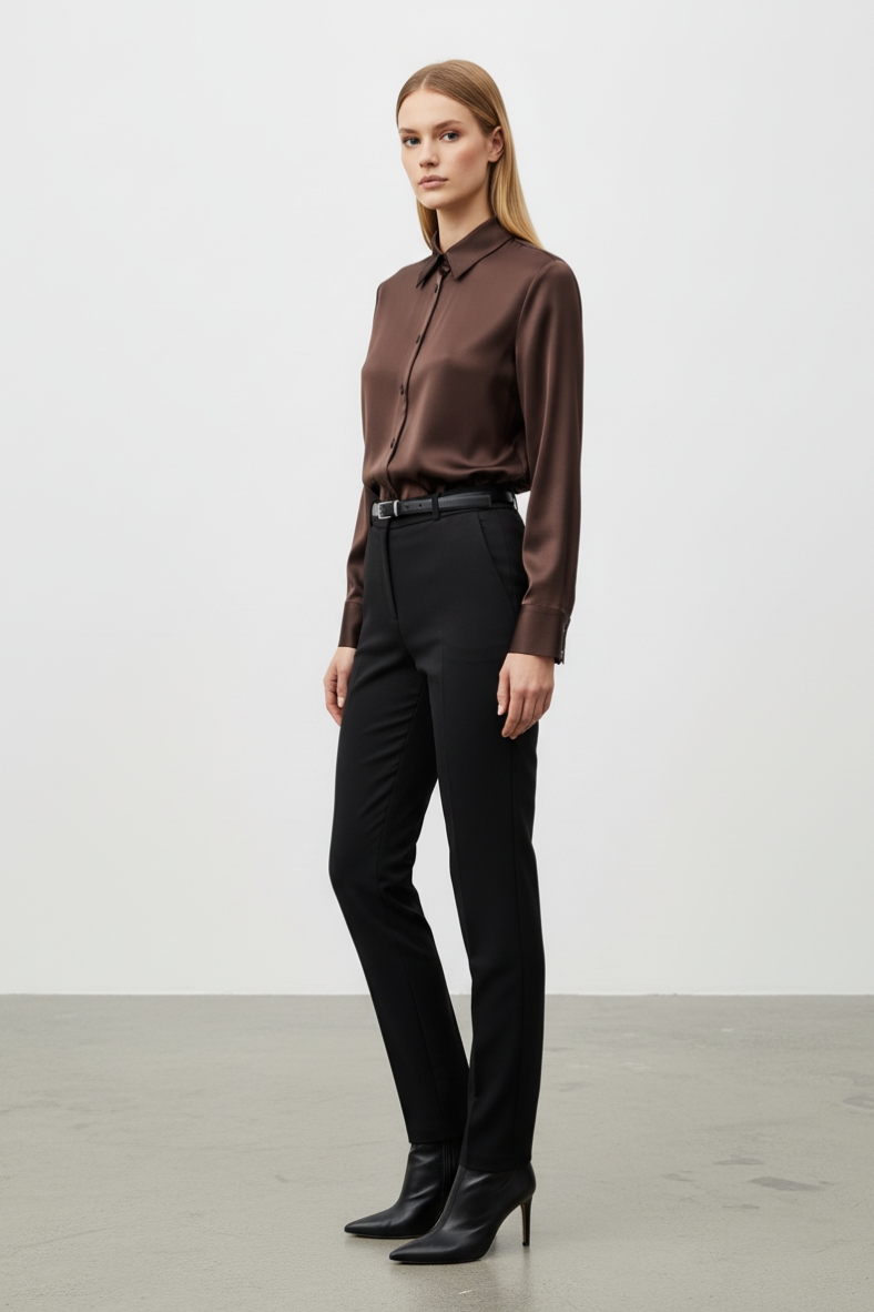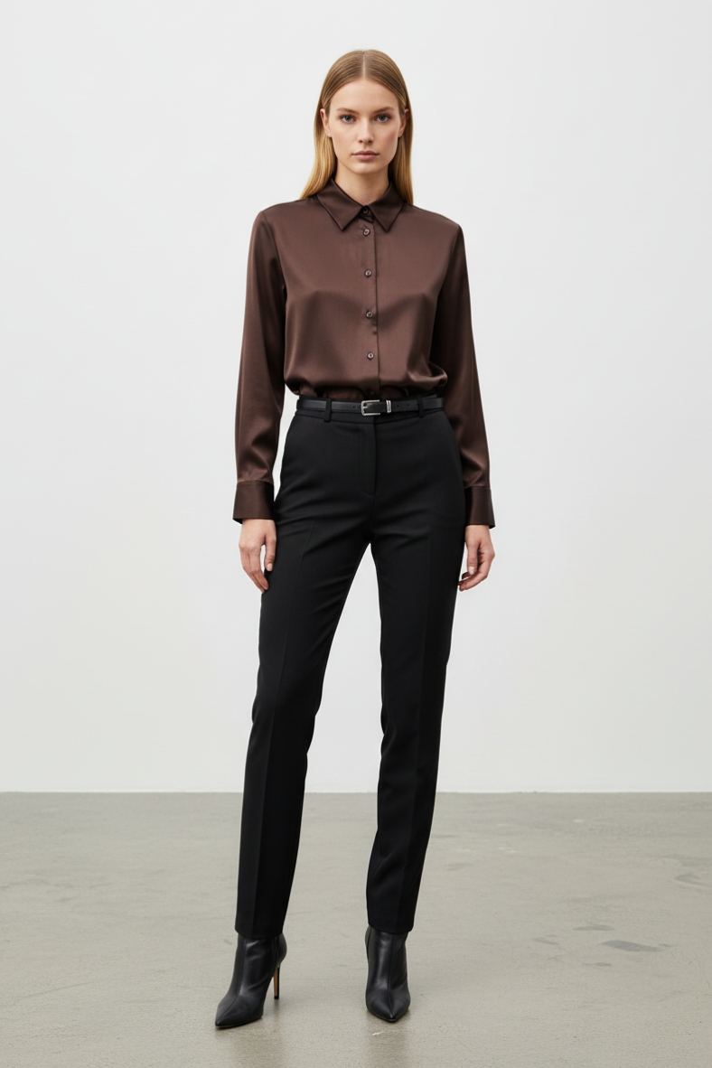 La camicia satinata elegante è il capo che non può mancare nel tuo armadio. Realizzata in poliestere di alta qualità, questa camicia offre una sensazione di morbidezza al tatto e un drappeggio impeccabile. Il suo design classico, con colletto e bottoni frontali, la rende versatile per ogni occasione, dal lavoro a una serata fuori. Puoi abbinarla a un paio di pantaloni slim fit per un look professionale, oppure a una gonna midi per un outfit più femminile e sofisticato. I dettagli come le maniche lunghe e il taglio dritto conferiscono un tocco di eleganza, mentre la finitura satinata cattura la luce, aggiungendo un tocco di glamour. Non dimenticare di completare il tuo look con un paio di tacchi alti per slanciare la figura e un blazer per un effetto chic. Questa camicia è perfetta anche per essere indossata sotto un maglione o un cardigan, rendendola un capo ideale per le giornate più fresche. Scegli la camicia satinata elegante per esprimere il tuo stile unico e sofisticato.