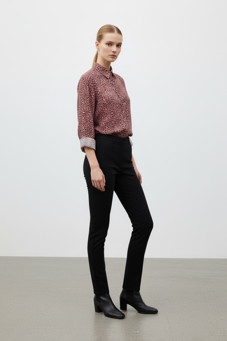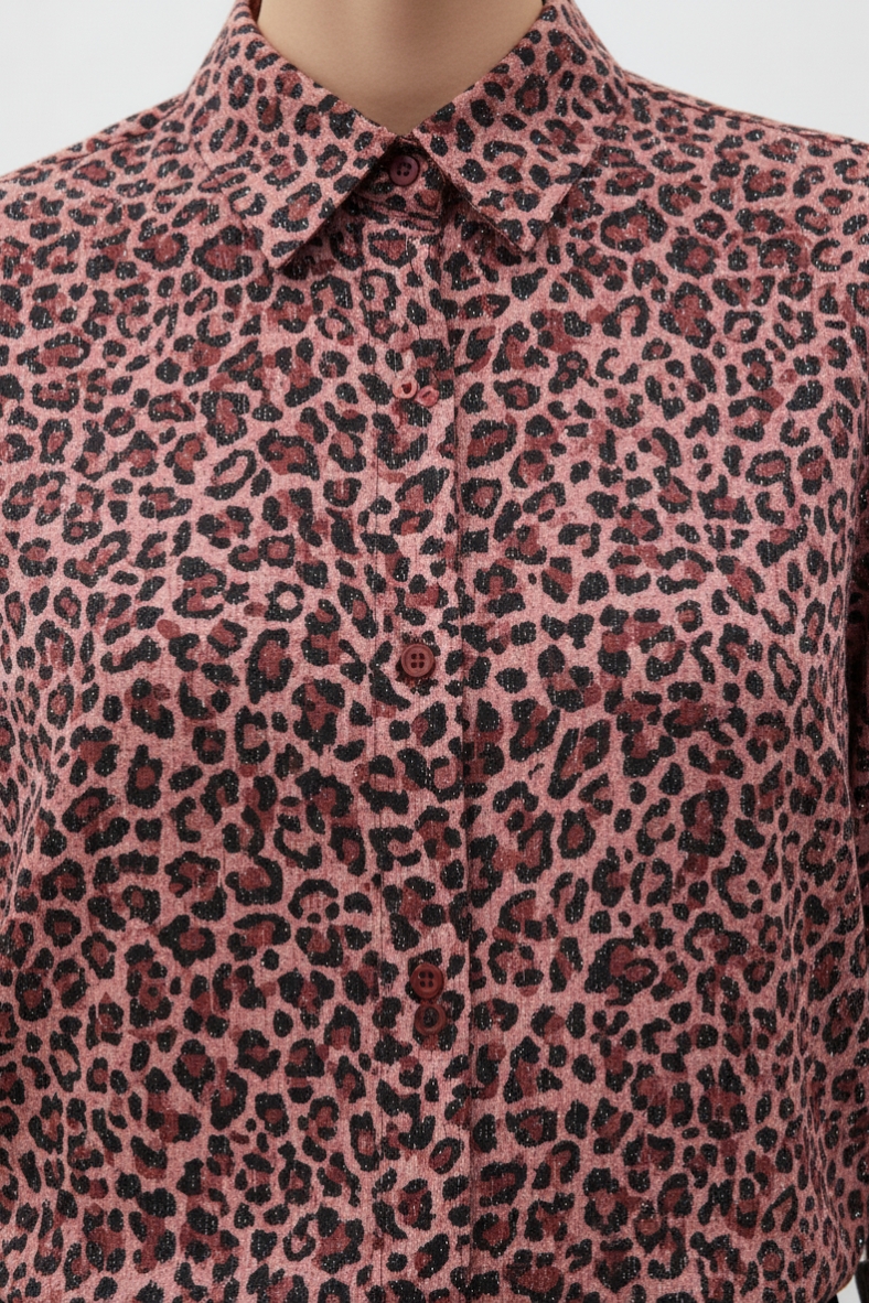 La camicia stampa animalier chic è l'elemento distintivo del tuo outfit. Realizzata in morbido poliestere, offre comfort e stile in ogni occasione.