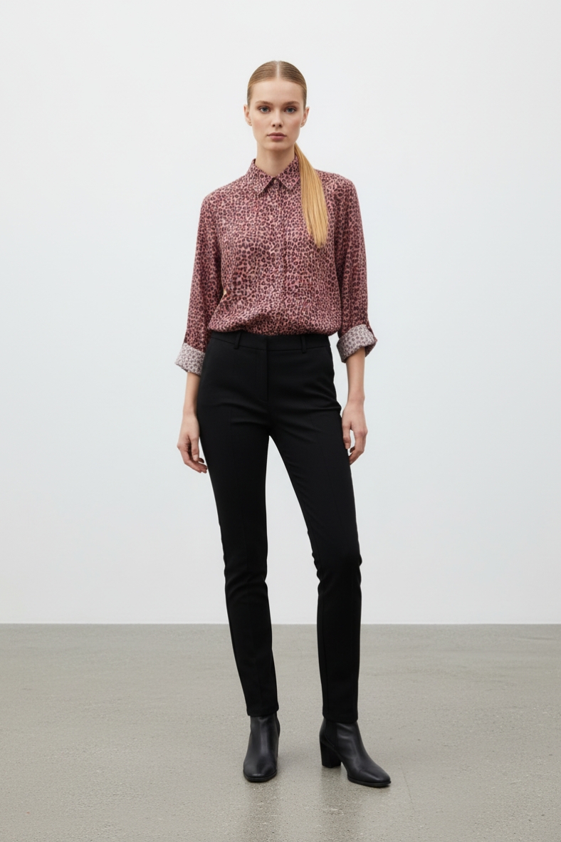 La camicia stampa animalier chic è un capo d’abbigliamento che non può mancare nel tuo guardaroba autunnale. Con il suo design elegante e la stampa audace, questa camicia è perfetta per chi desidera esprimere la propria personalità attraverso la moda. La vestibilità regolare assicura comfort e libertà di movimento, mentre il colletto classico e i polsini rifiniti aggiungono un tocco di raffinatezza. Realizzata in morbido poliestere, questa camicia è facile da abbinare e si presta a molteplici occasioni, dal lavoro a un’uscita serale. Abbinala a un paio di pantaloni neri slim fit per un look sofisticato, oppure opta per una gonna midi in tinta unita per un effetto più femminile. Non dimenticare di completare il tuo outfit con stivaletti in pelle per un tocco di classe. La camicia stampa animalier chic è il capo ideale per chi ama essere alla moda senza rinunciare al comfort.