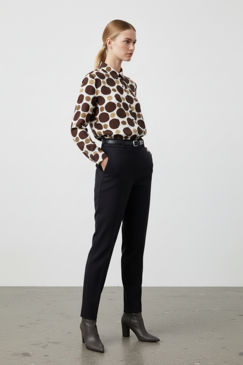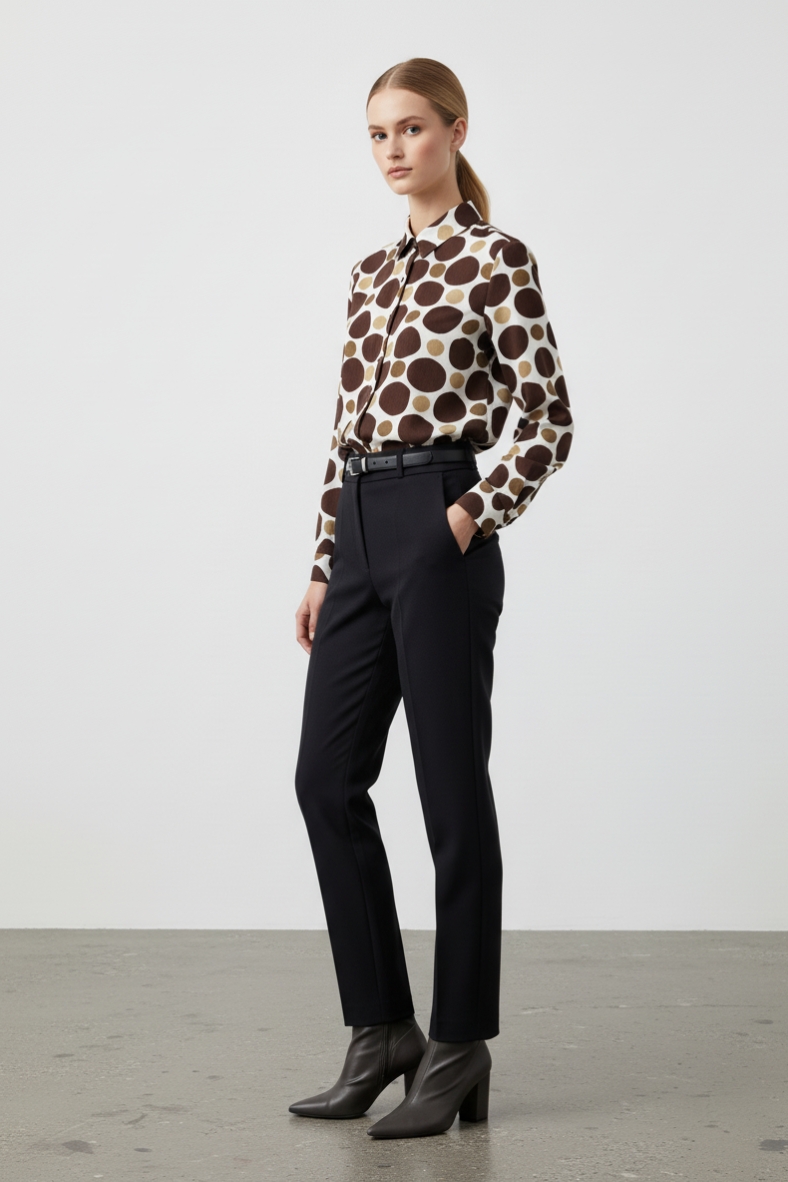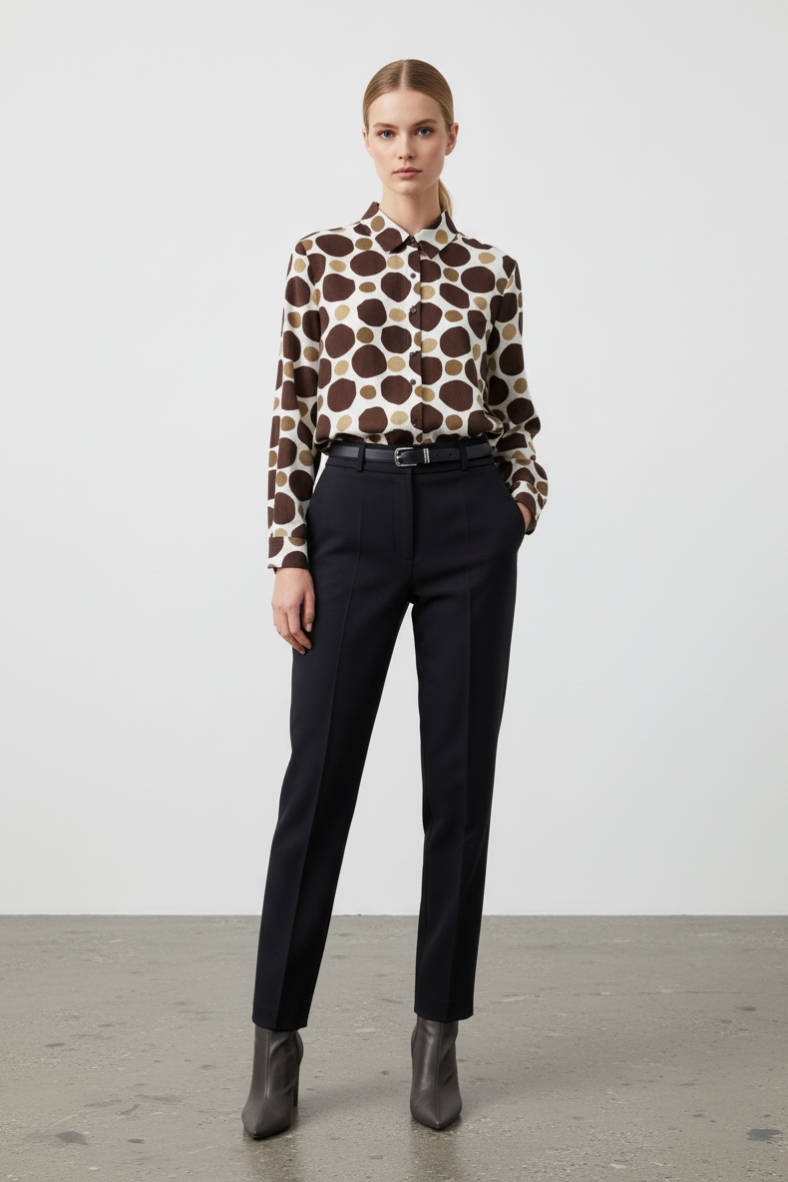 La camicia a pois elegante è un capo che non può mancare nel tuo armadio. Realizzata in morbida viscosa, offre una sensazione di comfort e leggerezza sulla pelle, rendendola ideale per le giornate autunnali e invernali. Il suo design a pois è un classico intramontabile, che aggiunge un tocco di originalità a qualsiasi outfit. Con una vestibilità regolare, questa camicia si adatta perfettamente a diverse silhouette, permettendo di essere indossata sia da sola che sotto un blazer.