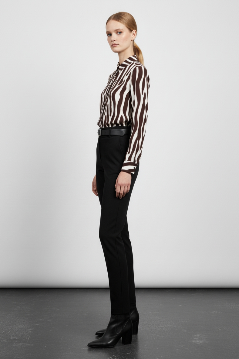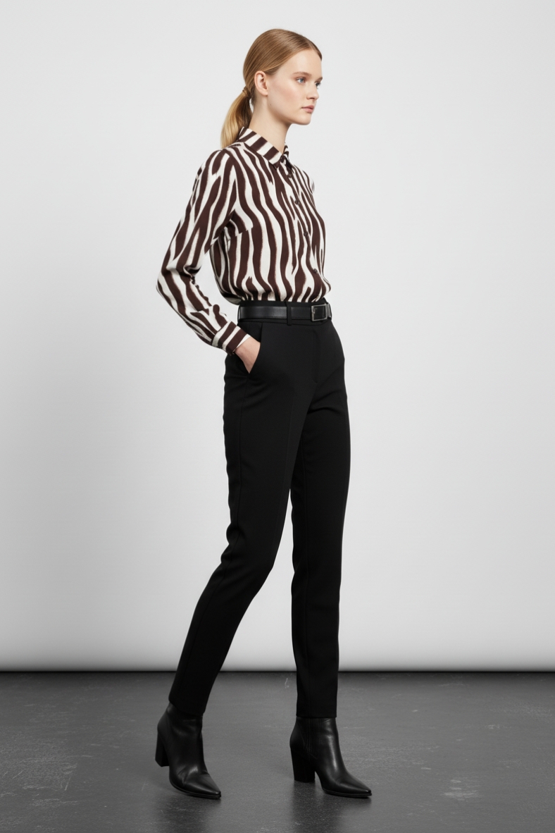 Per un outfit impeccabile, abbinala a un paio di pantaloni neri slim fit e stivaletti in pelle per un look da ufficio chic. Se desideri un tocco più casual, prova a indossarla con jeans a vita alta e sneakers bianche, per un contrasto di eleganza e comfort. Non dimenticare di aggiungere un blazer oversize per completare il tuo look, perfetto per le serate autunnali.