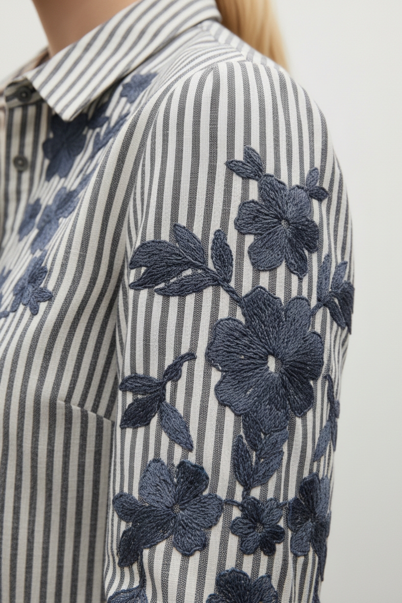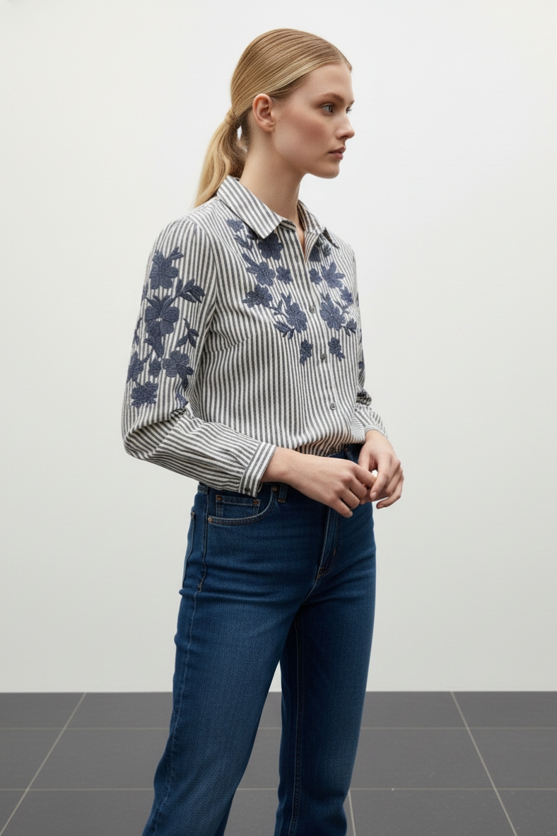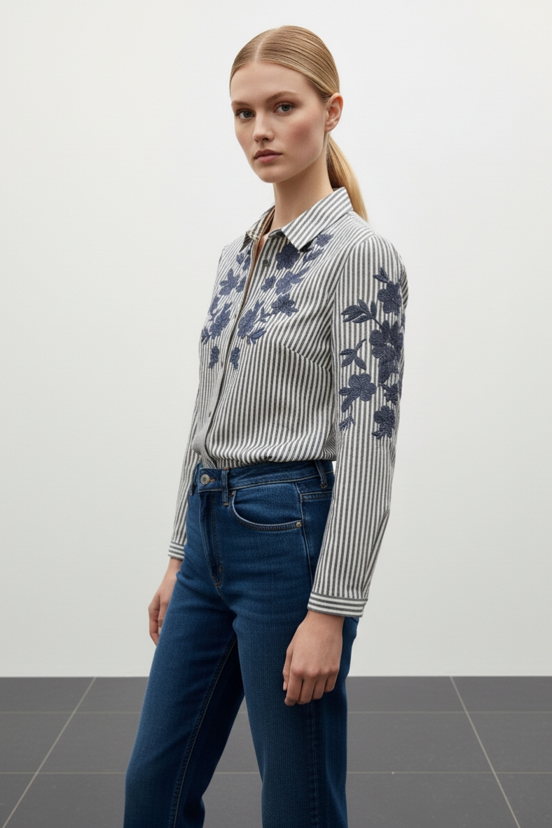La camicia in cotone 100% con ricami floreali è un must-have per ogni guardaroba femminile. Questo capo, dal design raffinato, presenta una vestibilità regolare che si adatta perfettamente a diverse silhouette. I dettagli ricamati sulle maniche e sul petto non solo catturano l’attenzione, ma offrono anche un tocco di originalità che la distingue da una semplice camicia. Il cotone di alta qualità garantisce una sensazione di morbidezza al tatto, rendendola ideale per l’uso quotidiano o per occasioni speciali.