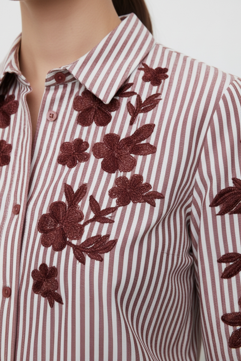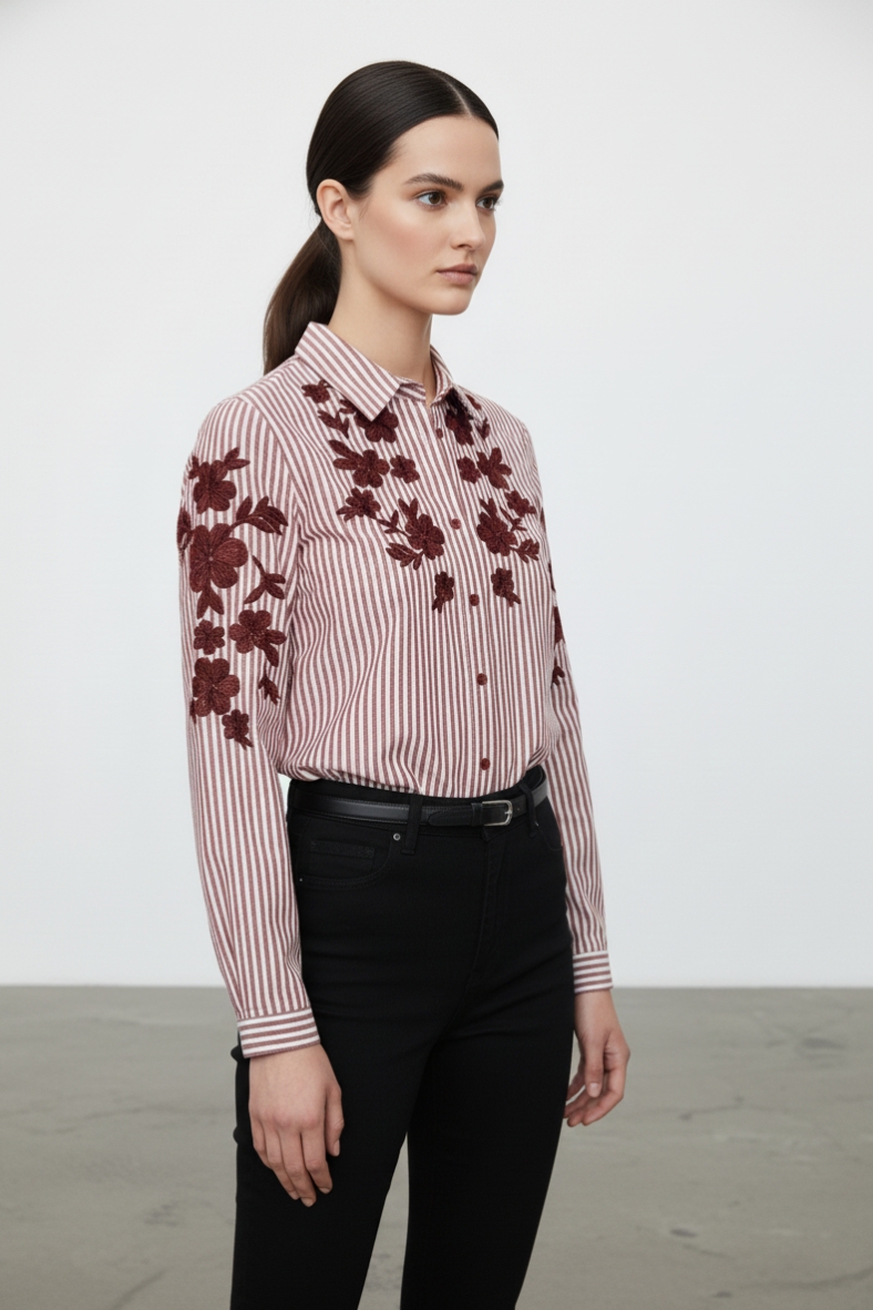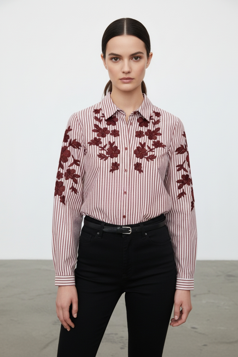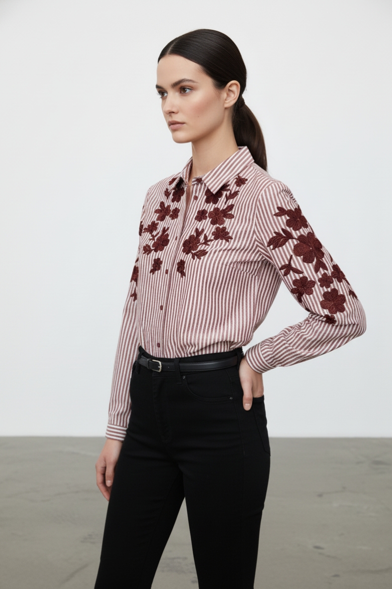 La camicia in cotone 100% con ricami floreali è un must-have per ogni guardaroba femminile. Questo capo, dal design raffinato, presenta una vestibilità regolare che si adatta perfettamente a diverse silhouette. I dettagli ricamati sulle maniche e sul petto non solo catturano l’attenzione, ma offrono anche un tocco di originalità che la distingue da una semplice camicia. Il cotone di alta qualità garantisce una sensazione di morbidezza al tatto, rendendola ideale per l’uso quotidiano o per occasioni speciali.