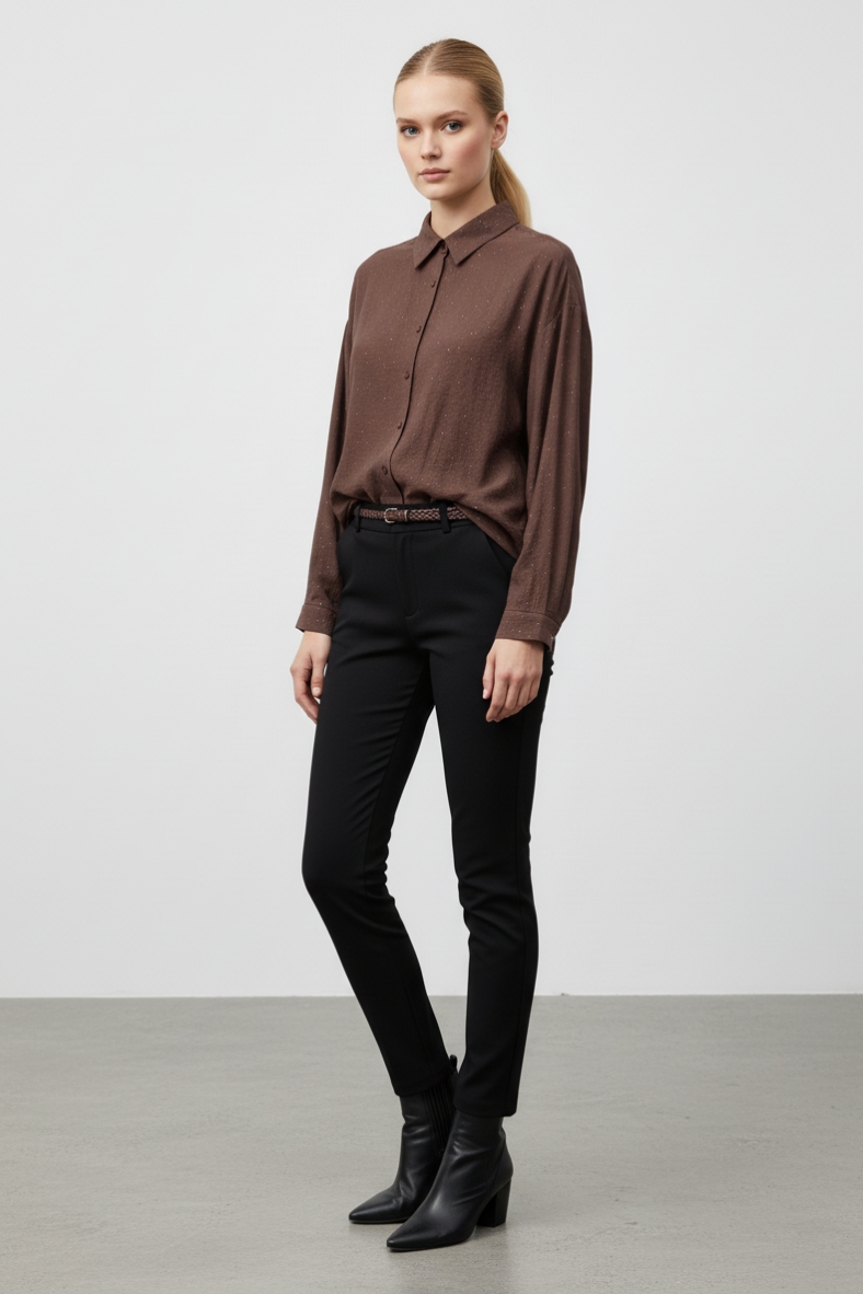 La camicia oversize con bottoni è un capo che non può mancare nel guardaroba di ogni donna moderna. Realizzata in morbida viscosa, offre una sensazione di comfort e leggerezza, perfetta per le giornate autunnali. Il suo design elegante e la vestibilità ampia la rendono versatile, adatta sia per un look casual che per occasioni più formali. Puoi abbinarla a un paio di pantaloni skinny per un effetto slanciato, oppure optare per un look più rilassato con jeans a vita alta. I bottoni frontali aggiungono un tocco di raffinatezza, mentre il colore caldo e avvolgente la rende perfetta per la stagione. Indossala con un blazer per un meeting di lavoro o con una giacca di pelle per un’uscita serale. Non dimenticare di completare il tuo outfit con stivaletti eleganti per un look impeccabile. Questa camicia è la scelta ideale per chi cerca un equilibrio tra stile e comfort, senza compromettere la qualità dei materiali. Scegli di esprimere la tua personalità attraverso questo capo versatile e trendy.