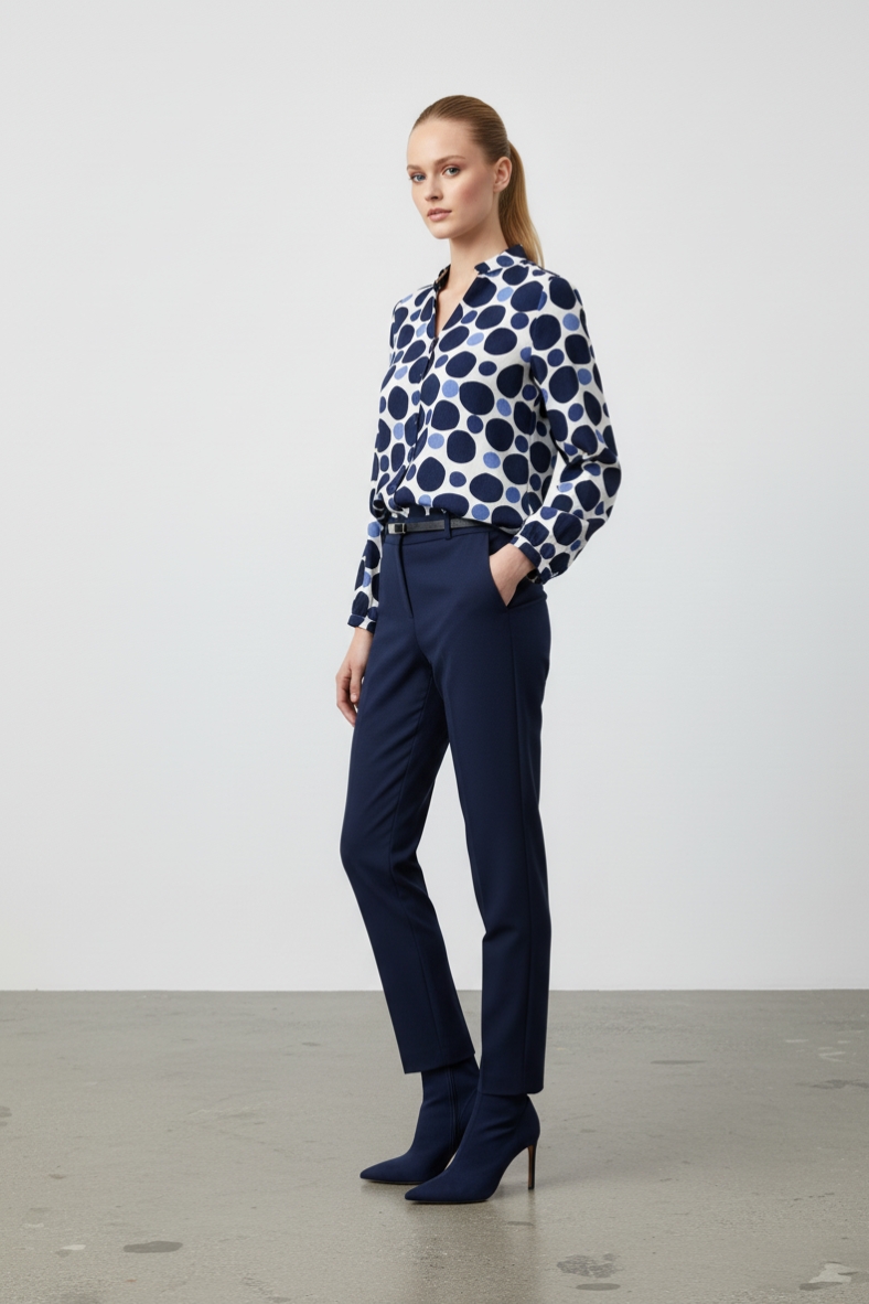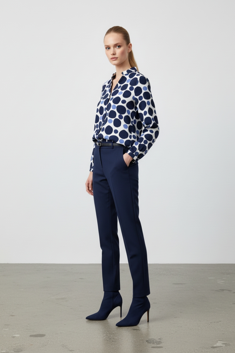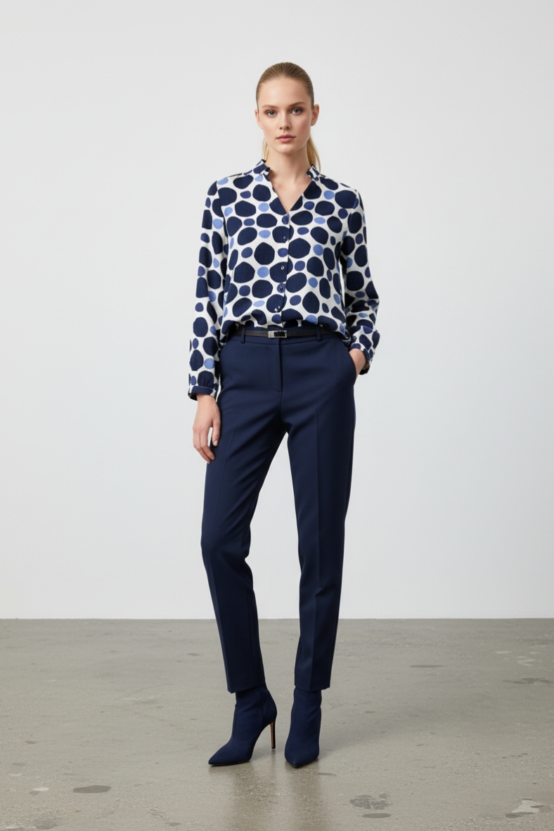 Per un look impeccabile, abbinala a pantaloni slim fit in tinta unita e un paio di décolleté per slanciare la figura. Se desideri un outfit più casual, prova a indossarla con jeans skinny e stivaletti. Non dimenticare di completare il tuo look con accessori minimalisti, come orecchini a cerchio e una borsa a tracolla. Questa camicia a fantasia è versatile e può essere facilmente trasformata da un look da ufficio a uno per il tempo libero, semplicemente cambiando i pantaloni e le scarpe. Scegli di indossarla anche sotto un blazer per un tocco di classe in più. Con la sua combinazione di comfort e stile, questa camicia diventerà rapidamente un tuo preferito.