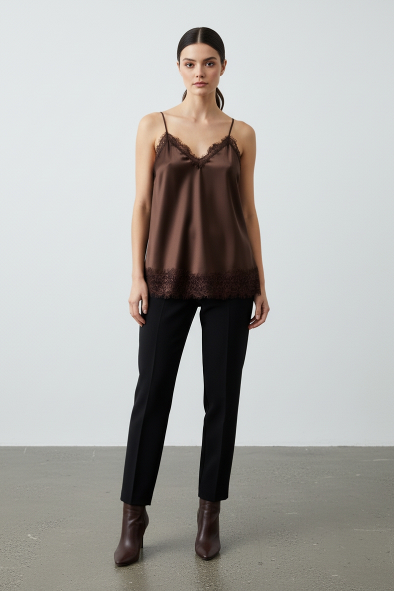 Con la canottiera satin con pizzo, ogni outfit diventa un’opera d’arte. Sperimenta con i colori e i tessuti per creare combinazioni uniche e personalizzate. Non perdere l’occasione di aggiungere questo pezzo essenziale al tuo guardaroba!