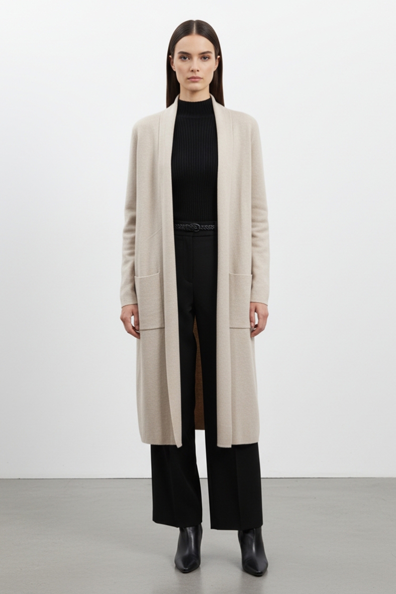 Il cardigan lungo in viscosa è l'aggiunta perfetta al tuo guardaroba. Con una vestibilità comoda e un design elegante, è ideale per ogni occasione, dal lavoro al tempo libero.