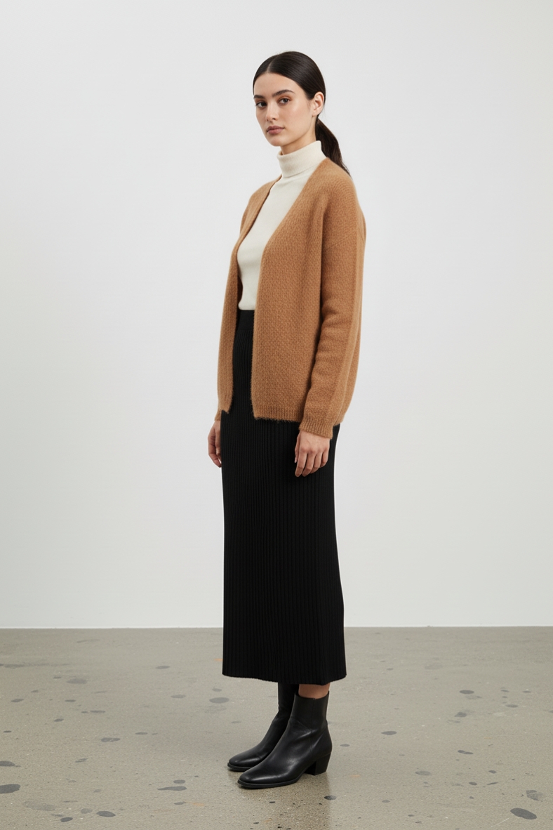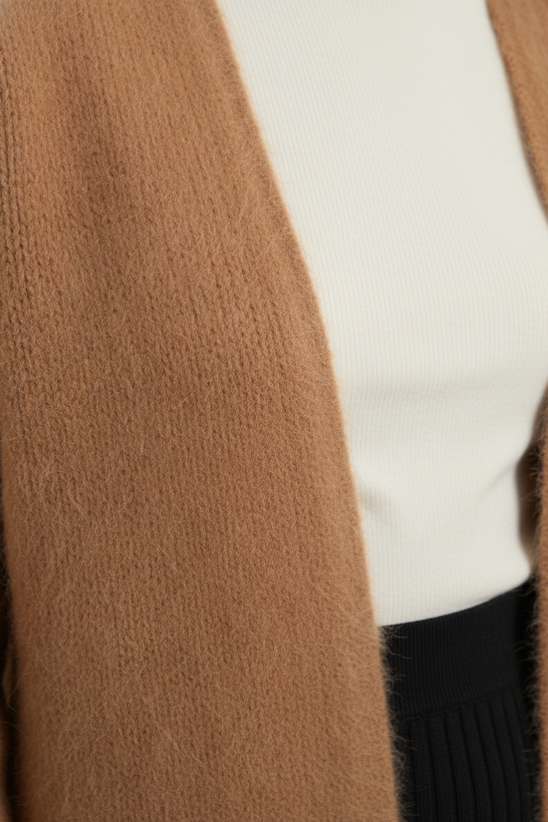 Questo cardigan morbido e avvolgente è l'aggiunta perfetta al tuo guardaroba autunnale. Realizzato con una pregiata miscela di mohair e lana, offre calore e comfort senza rinunciare allo stile.