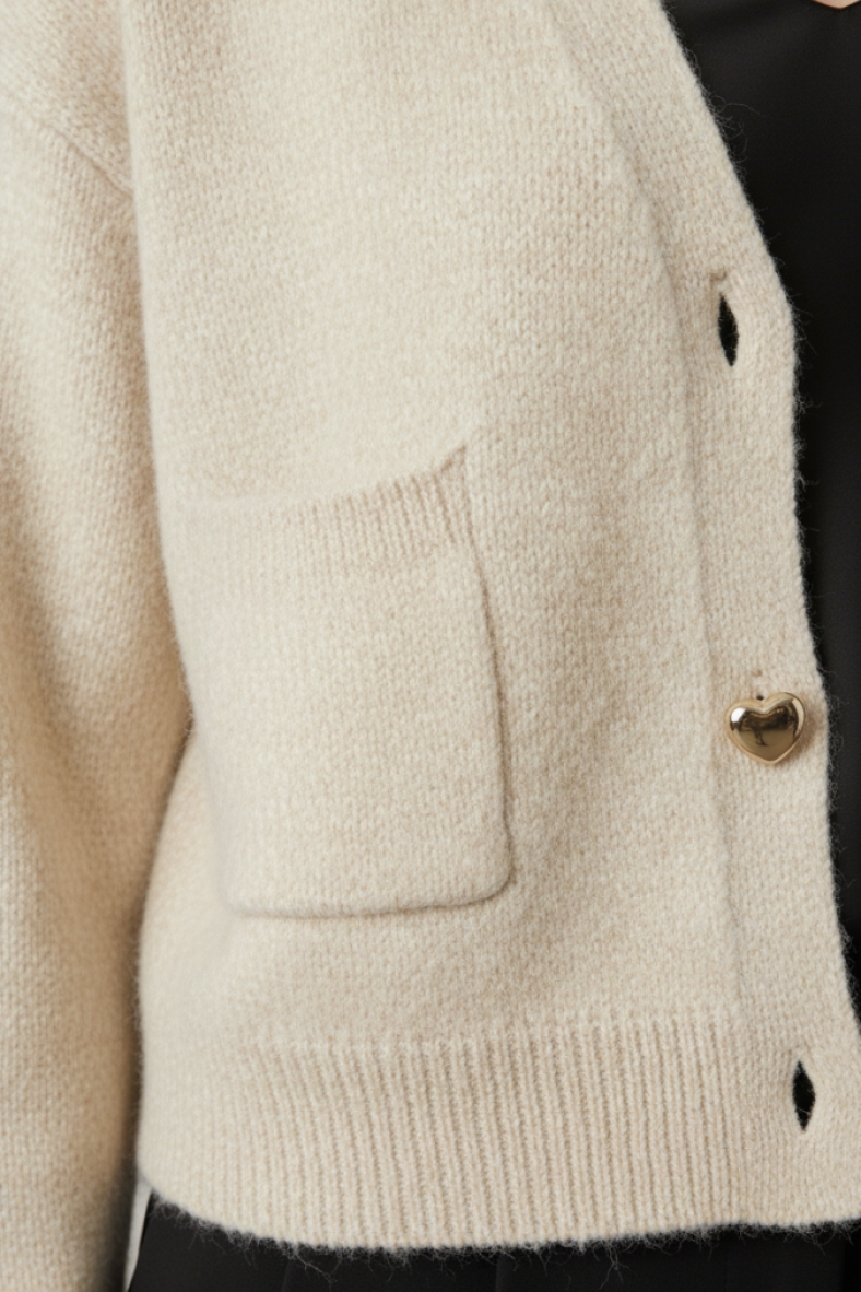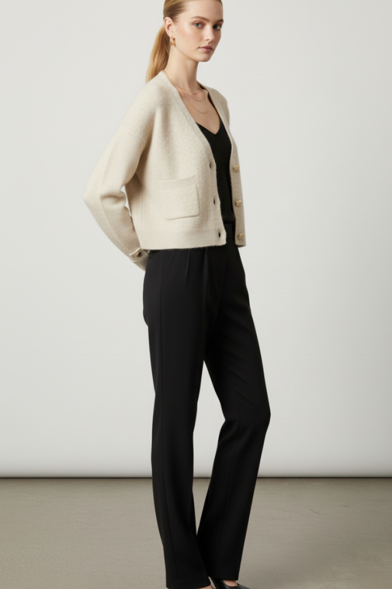 La tonalità neutra del cardigan lo rende estremamente versatile, permettendoti di abbinarlo facilmente a qualsiasi colore. Indossalo con jeans skinny e stivaletti per un look casual-chic, oppure con una gonna midi e tacchi per un’uscita serale. Con il cardigan chic con bottoni, ogni outfit diventa un’opera d’arte di stile e comfort. Non lasciarti sfuggire l’opportunità di aggiungere questo pezzo esclusivo al tuo guardaroba!