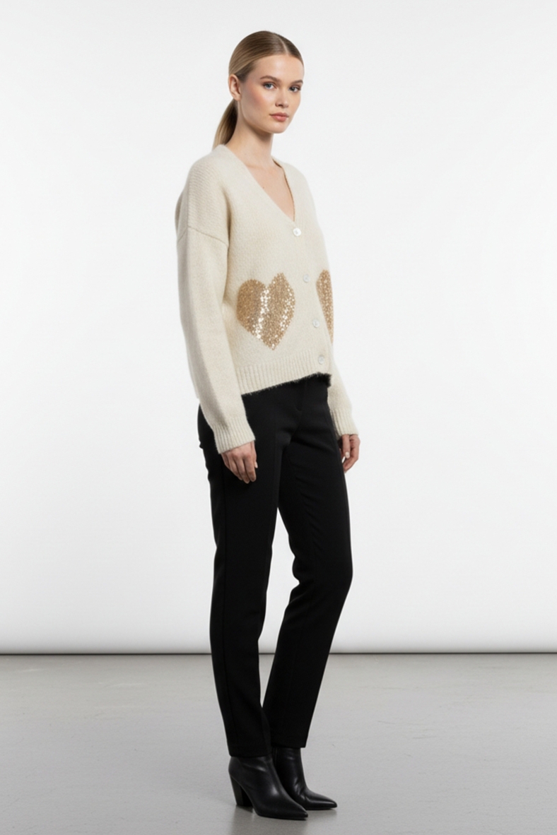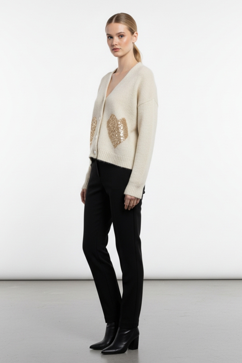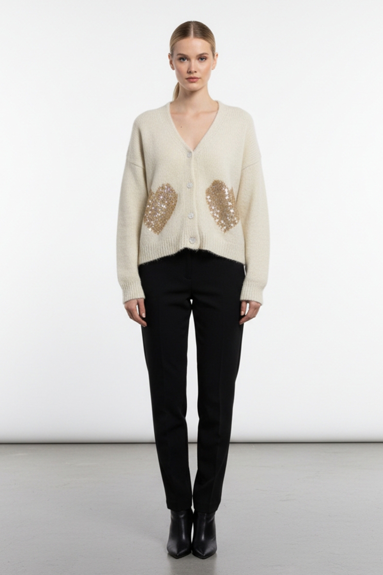 Il cardigan oversize con dettagli scintillanti è un must-have per la stagione autunnale. Realizzato con una miscela di lana e poliestere, questo capo non solo offre calore, ma anche un tocco di eleganza grazie ai suoi dettagli luccicanti. La vestibilità ampia e comoda lo rende perfetto per essere indossato sopra una semplice t-shirt o una camicia, mentre i suoi bottoni frontali aggiungono un elemento di praticità e stile.