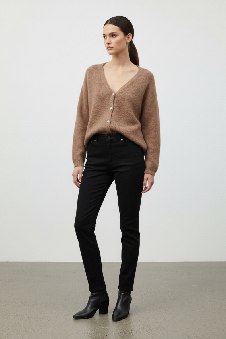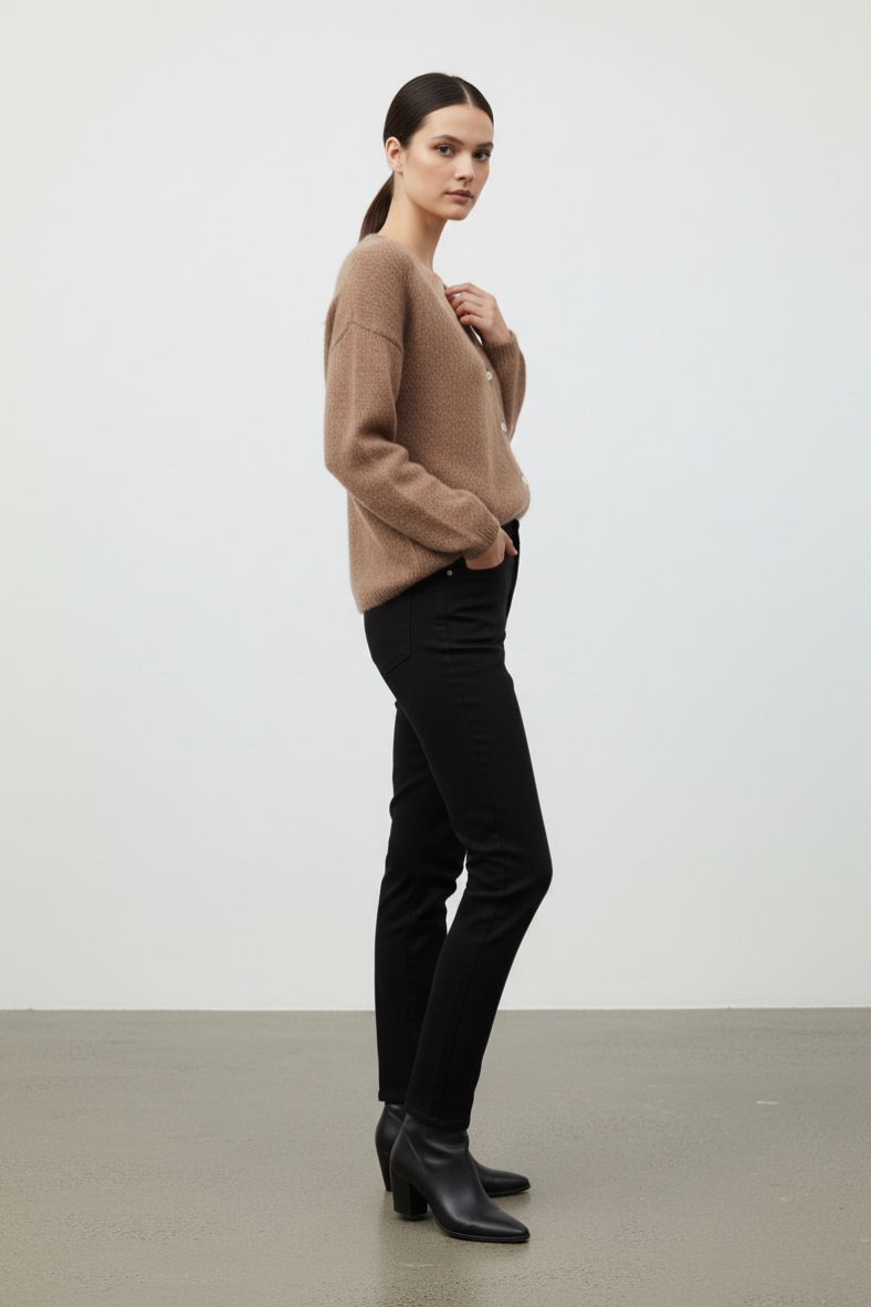 Per un outfit impeccabile, abbinalo a pantaloni a palazzo in tessuto, che creano un contrasto elegante e sofisticato. Completa il look con stivaletti in pelle nera per un tocco di raffinatezza. Questo cardigan è ideale anche per un look casual-chic, indossato sopra un abito midi con stivali alti. Non dimenticare di accessoriare con una sciarpa in cashmere per un ulteriore tocco di lusso. Sia che tu stia andando in ufficio o a un brunch con le amiche, il cardigan morbido con bottoni sarà il tuo alleato di stile per tutta la stagione.