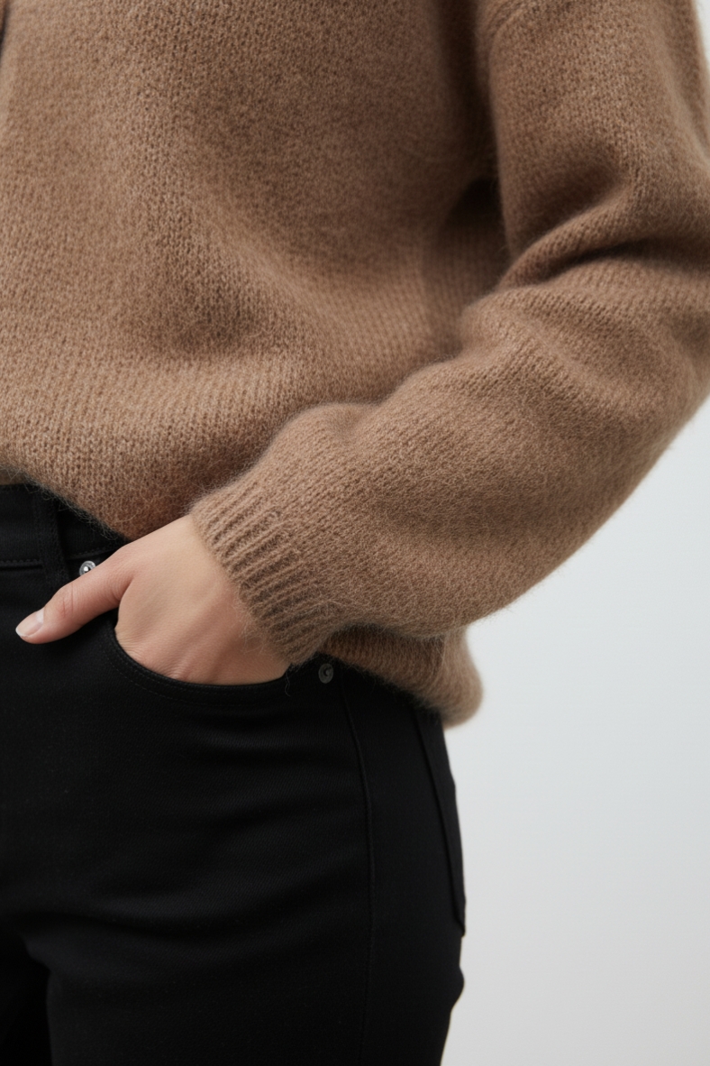 Il cardigan morbido con bottoni è l'aggiunta perfetta al tuo guardaroba invernale. Realizzato con una miscela di mohair e lana, offre calore e comfort senza rinunciare allo stile.