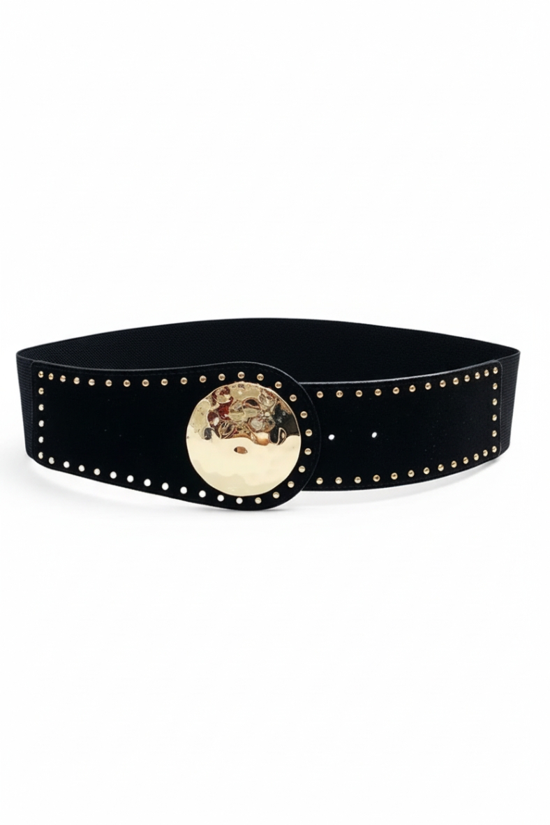 Aggiungi un tocco di eleganza al tuo look con la nostra cintura nera con fibbia dorata. Realizzata con materiali di alta qualità, è l'accessorio ideale per ogni occasione.