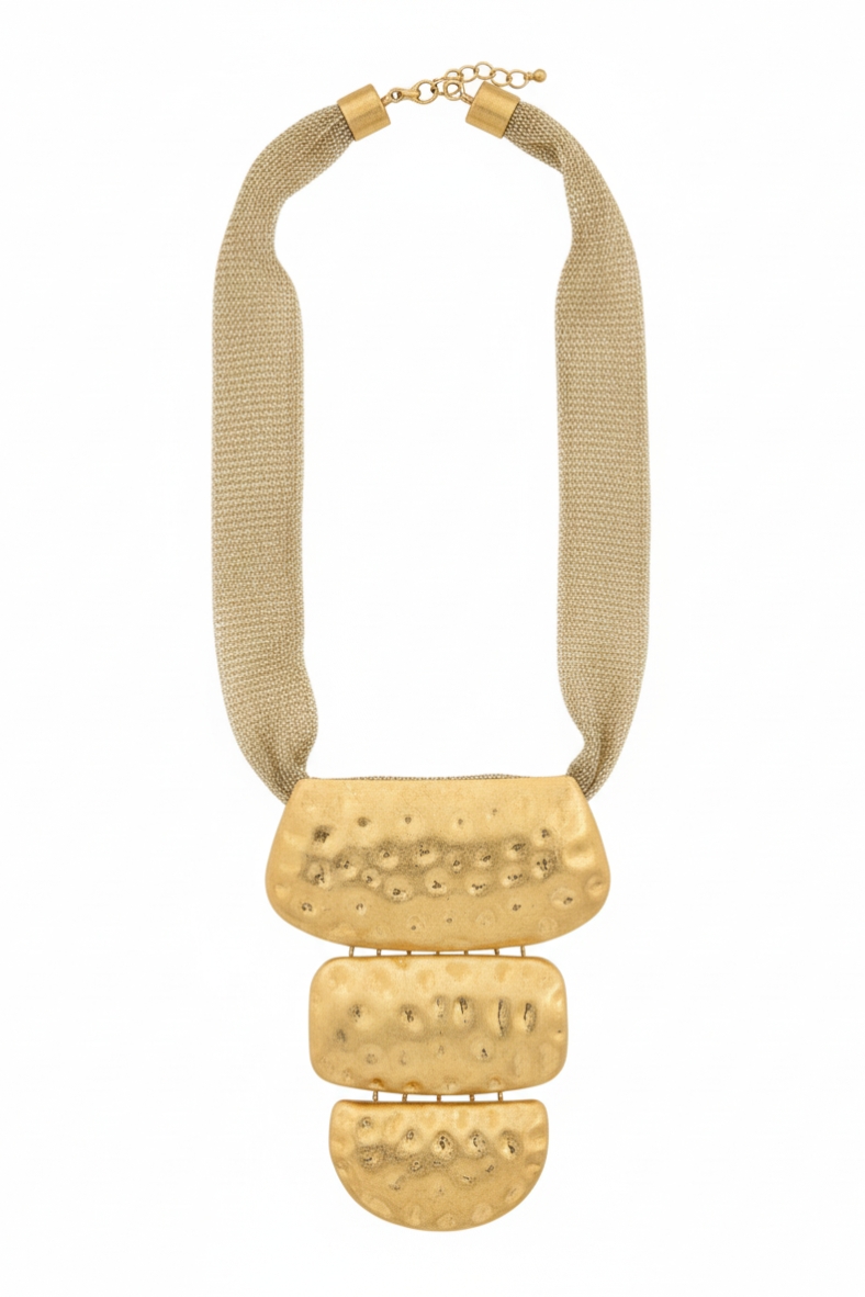 Aggiungi un tocco di eleganza al tuo look con questa collana dal design unico. I dettagli dorati e il materiale di alta qualità la rendono un accessorio imperdibile per ogni occasione.