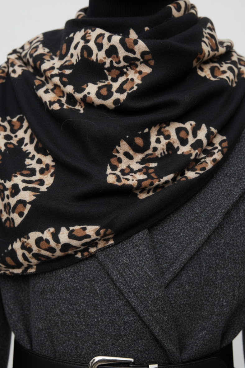 Il foulard in viscosa leopardato è l'accessorio ideale per completare il tuo outfit. Morbido al tatto e leggero, offre comfort e stile in ogni occasione.