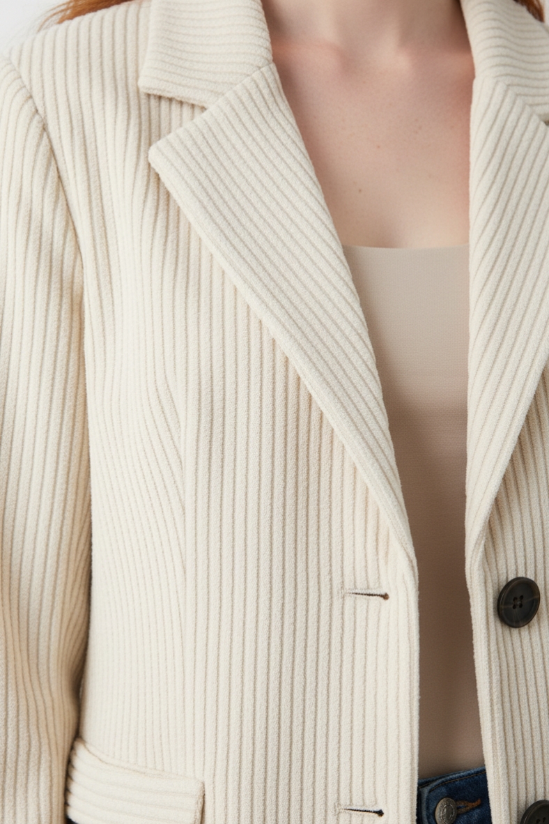 La giacca a costine effetto velluto è un must-have per la stagione autunnale. Realizzata in morbido velluto, offre un tocco di eleganza e comfort, ideale per ogni occasione.