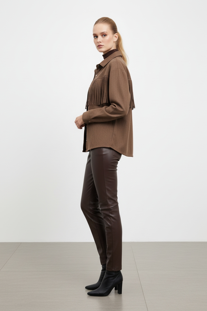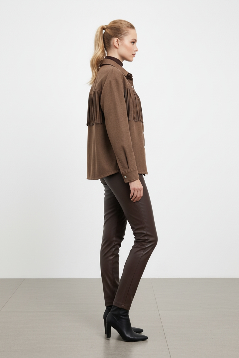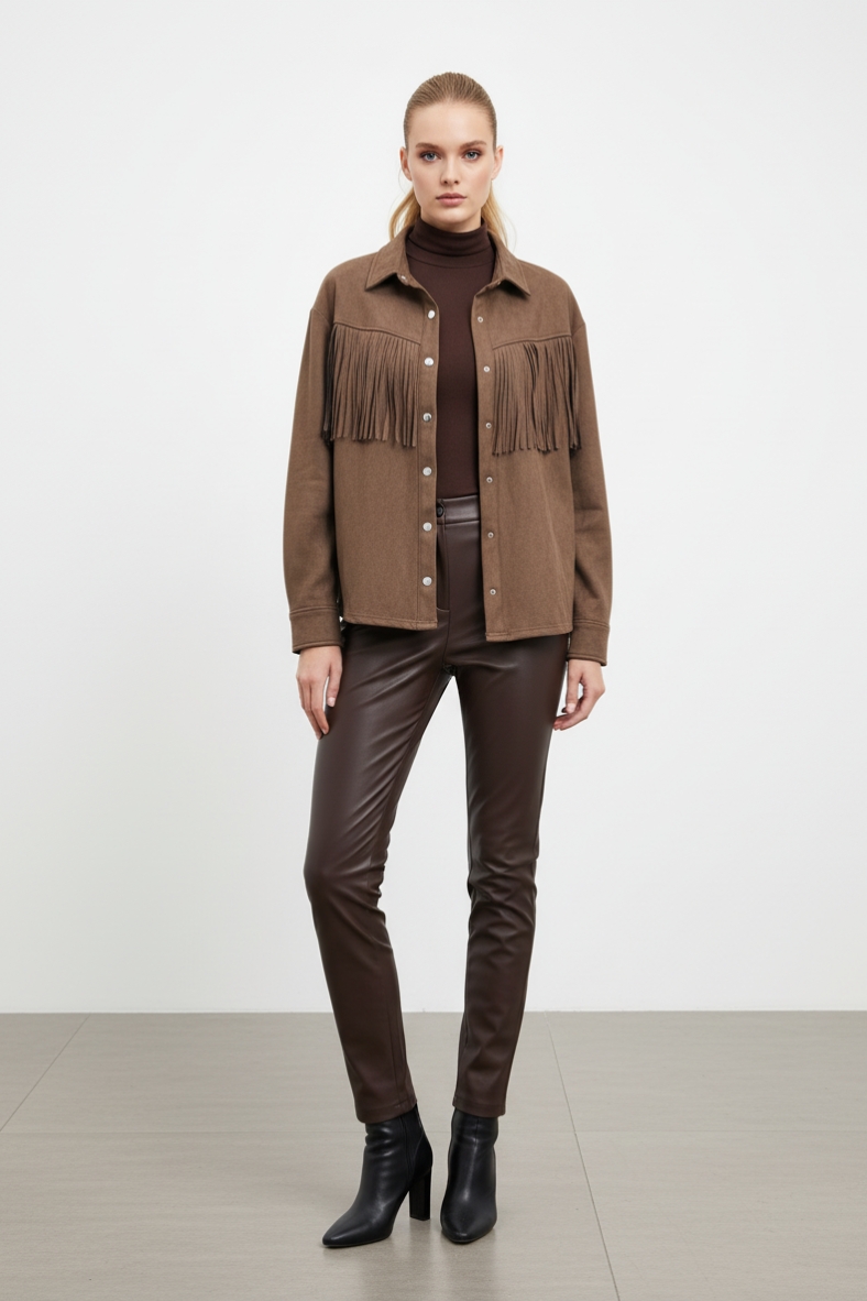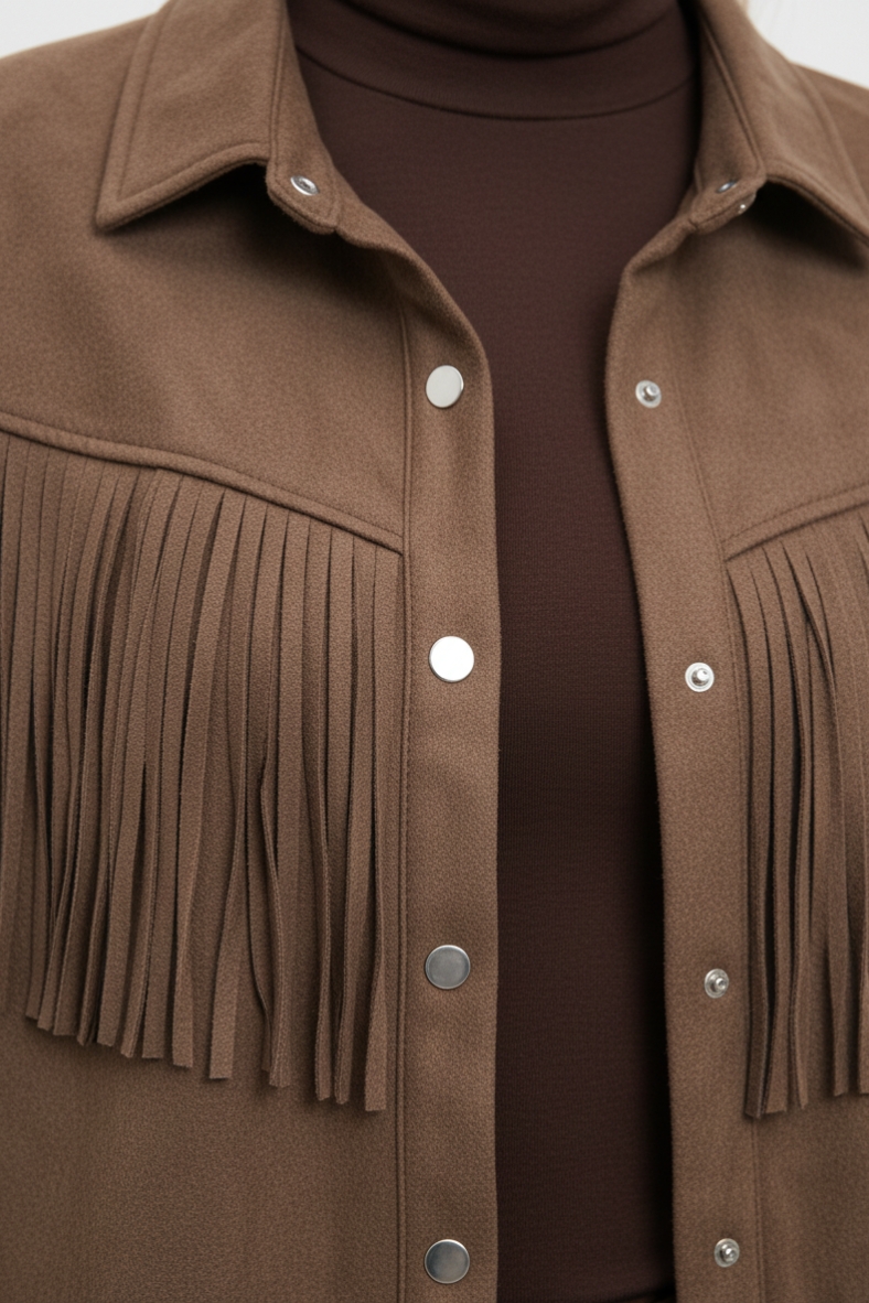 Aggiungi un tocco di stile al tuo outfit con la nostra giacca con frange chic. Realizzata con materiali di alta qualità, è perfetta per l'autunno-inverno.