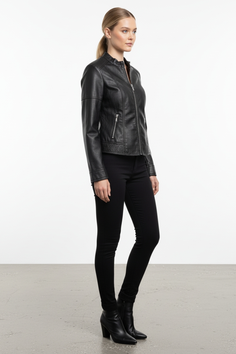 La giacca in pelle slim fit è un capo essenziale per ogni donna che desidera un look sofisticato e contemporaneo. Realizzata in poliuretano di alta qualità, questa giacca offre una sensazione di morbidezza al tatto, garantendo comfort e stile. Il design aderente esalta la silhouette femminile, mentre il colletto alla coreana e la chiusura con zip aggiungono un tocco di modernità. Perfetta per le serate autunnali, può essere facilmente abbinata a jeans skinny e stivali alti per un look casual-chic. Per un outfit da giorno, prova a indossarla sopra un vestito midi e completa il tutto con accessori minimalisti. La giacca è versatile e si presta a molteplici abbinamenti, rendendola un investimento intelligente per il tuo guardaroba. Non dimenticare di aggiungere una sciarpa in cashmere per un tocco di eleganza e calore. Sia che tu stia uscendo per un aperitivo con le amiche o per una passeggiata nel parco, questa giacca in pelle sarà il tuo alleato di stile.