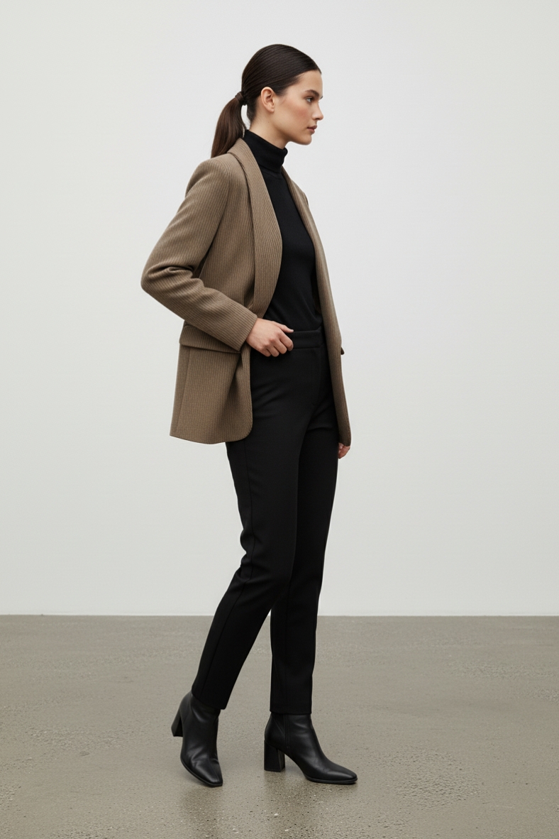 Puoi abbinarla a una semplice maglia nera e a pantaloni slim fit per un outfit da ufficio impeccabile. Per un tocco di eleganza in più, prova a indossarla con una camicia bianca e una gonna midi. Gli stivali con tacco completano il look, donando slancio e femminilità.
