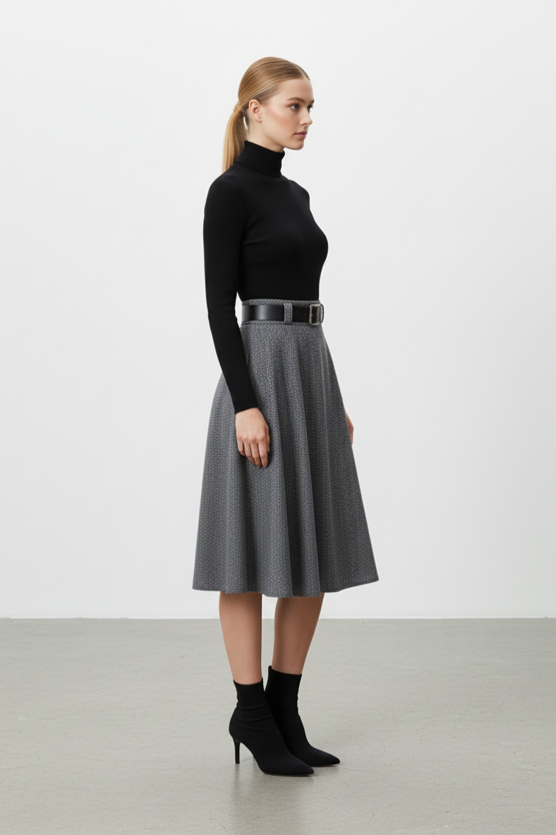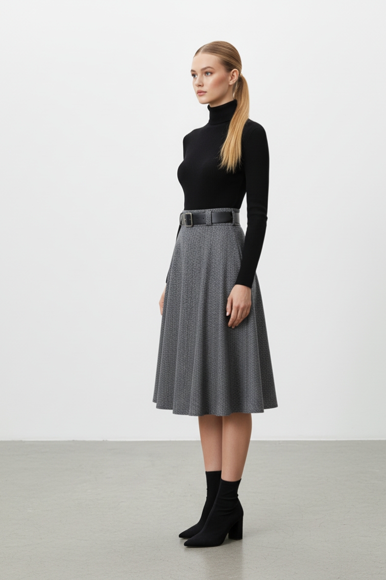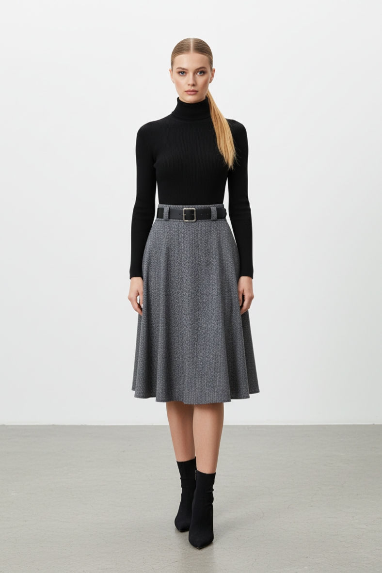 La gonna midi è un capo versatile che si presta a molteplici interpretazioni: puoi indossarla con stivali alti per un look invernale o con scarpe ballerine per un’aria più casual. Grazie alla sua lunghezza e alla sua linea svasata, è adatta a tutte le silhouette, valorizzando la figura femminile in modo elegante. Non perdere l’occasione di aggiungere questo pezzo essenziale al tuo guardaroba, per un autunno-inverno all’insegna dello stile e della raffinatezza.
