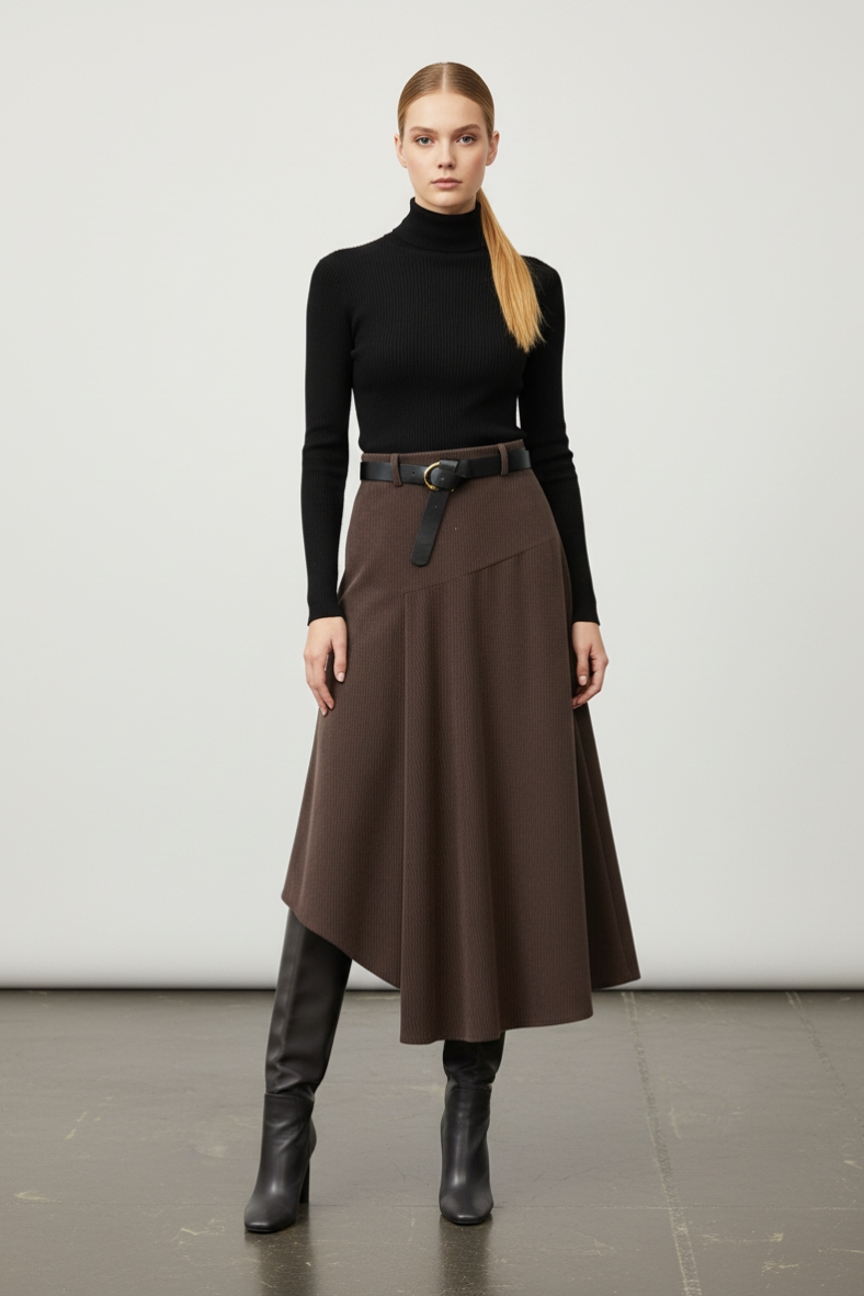 In definitiva, la gonna asimmetrica con cintura è un capo versatile che non può mancare nel tuo guardaroba autunnale. Scegli di esprimere il tuo stile personale con questo pezzo unico, perfetto per ogni occasione.