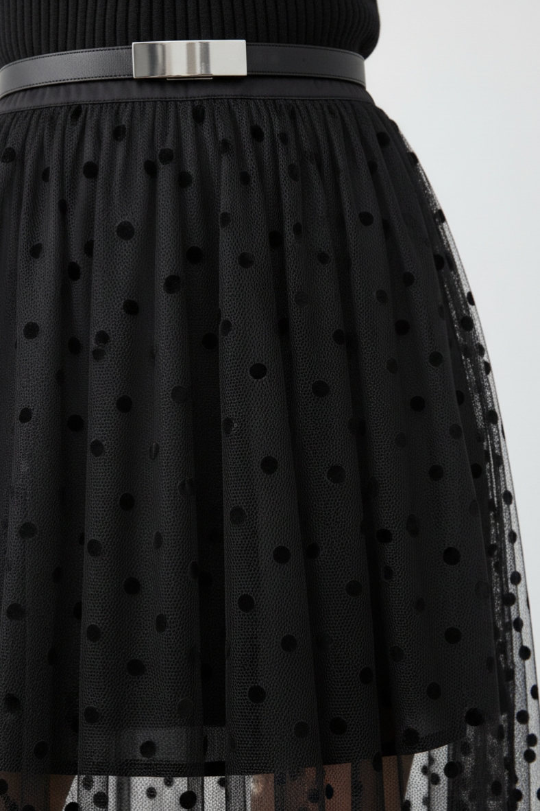 La gonna in tulle a pois è un must-have per il tuo guardaroba. Realizzata in tessuti leggeri e morbidi, offre comfort e stile in ogni occasione.