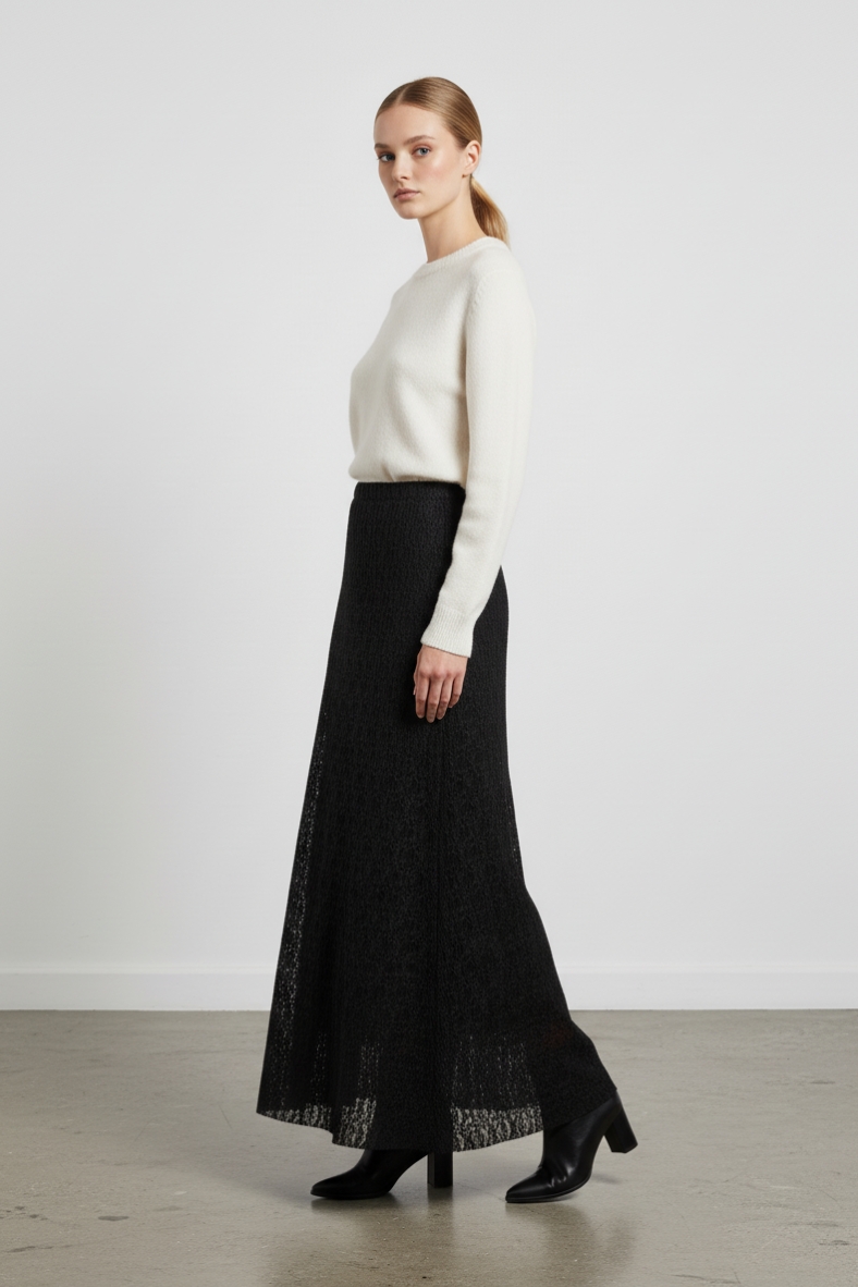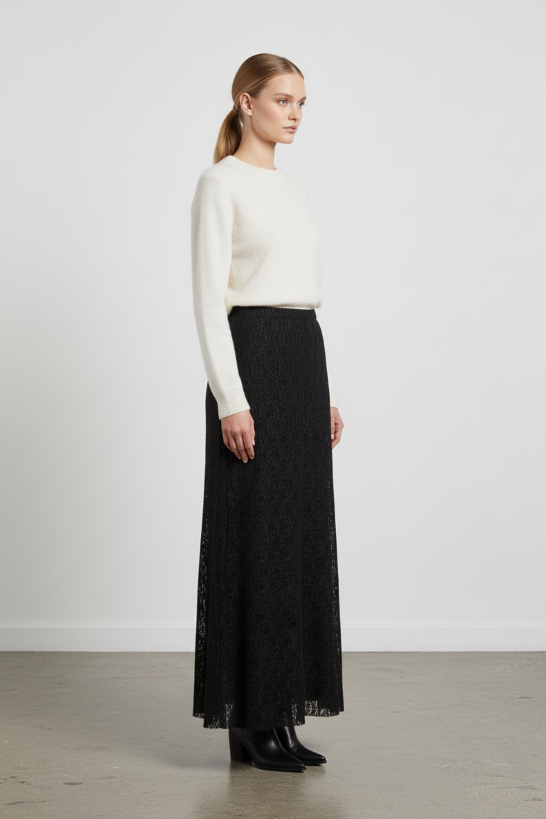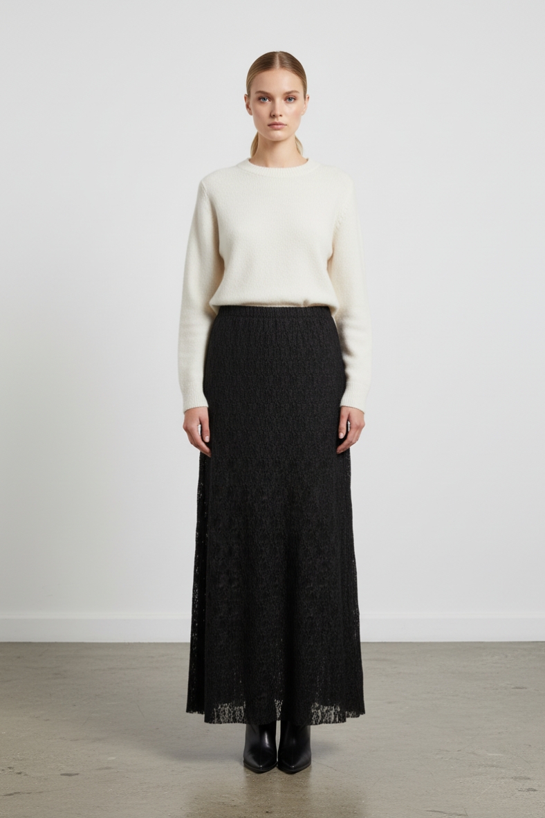 La gonna lunga in pizzo è l’elemento chiave per un guardaroba autunnale chic e raffinato. Questo capo, caratterizzato da un delicato tessuto in pizzo, avvolge la figura con grazia, creando un effetto di grande impatto visivo. La sua lunghezza e il design fluido la rendono perfetta per ogni occasione, dal brunch domenicale a una serata elegante.
