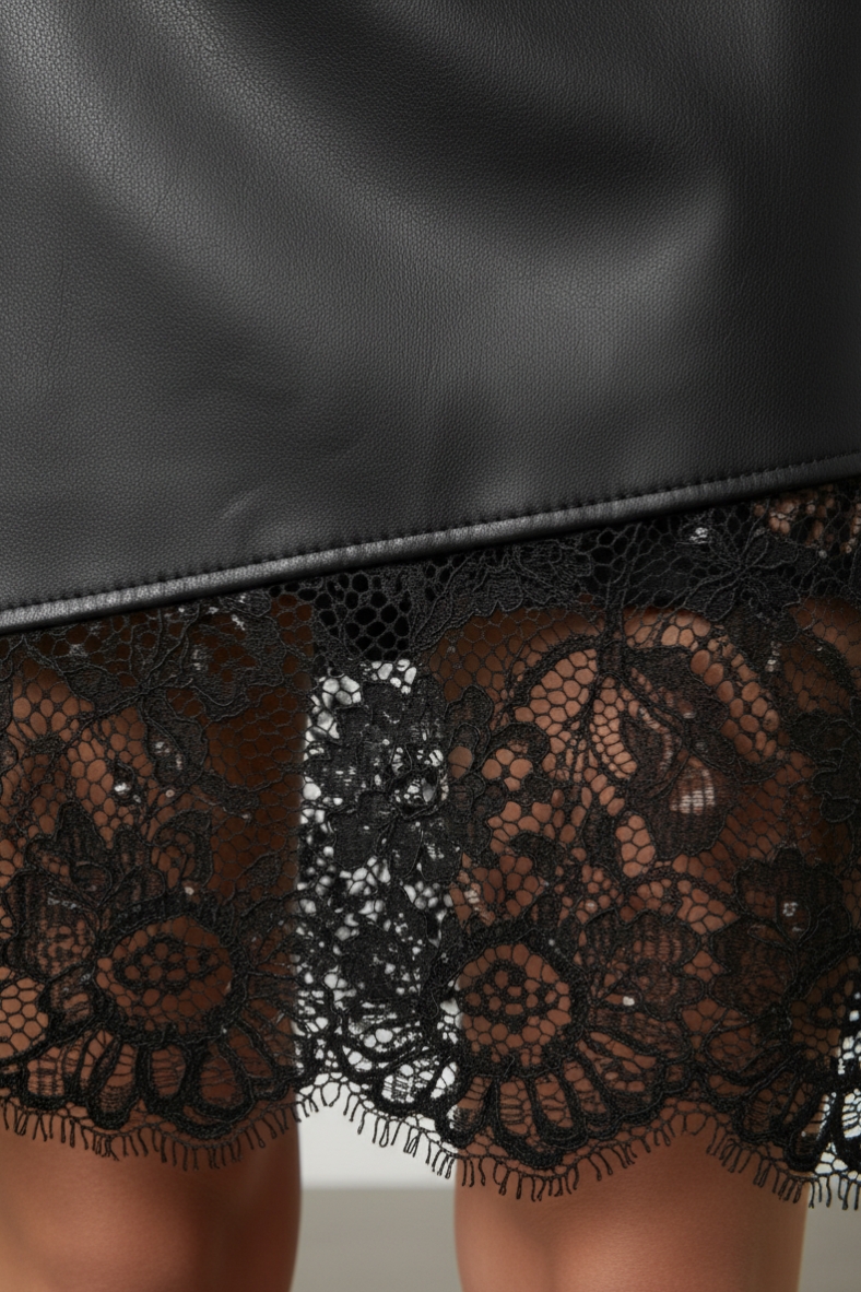 Gonna in ecopelle con pizzo